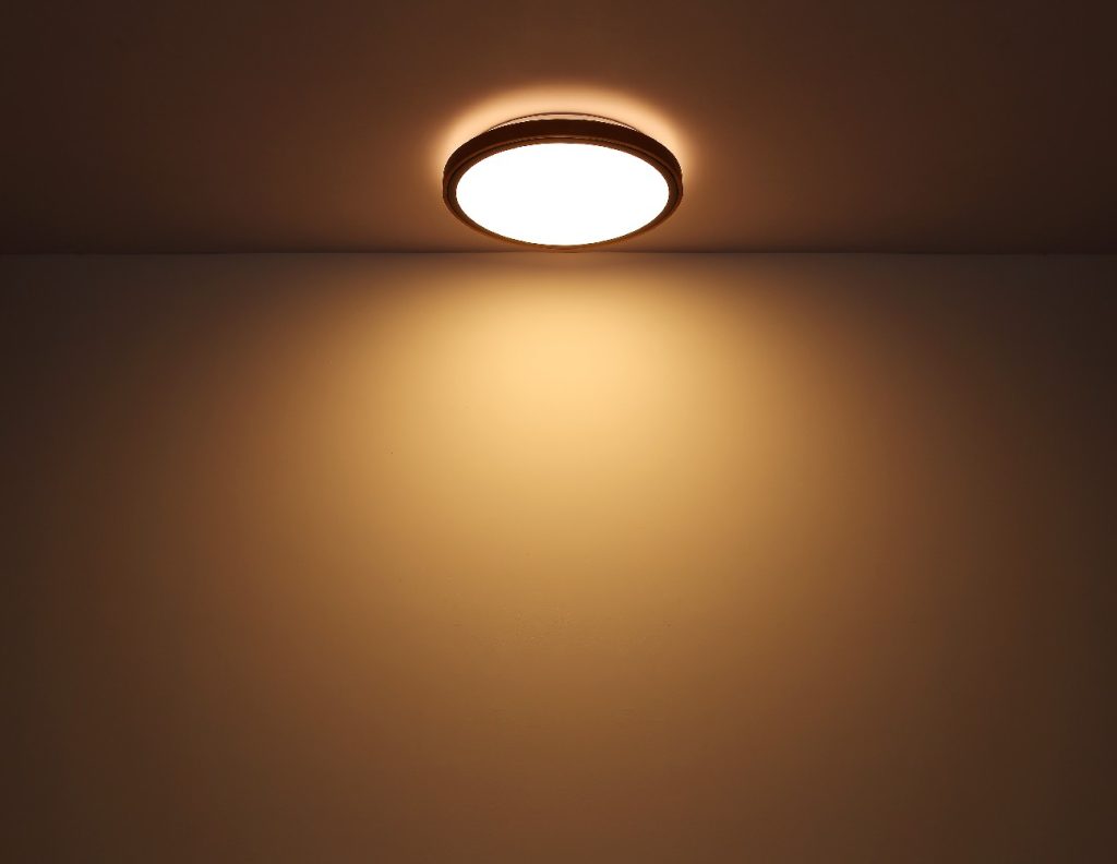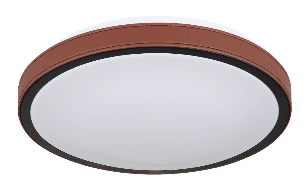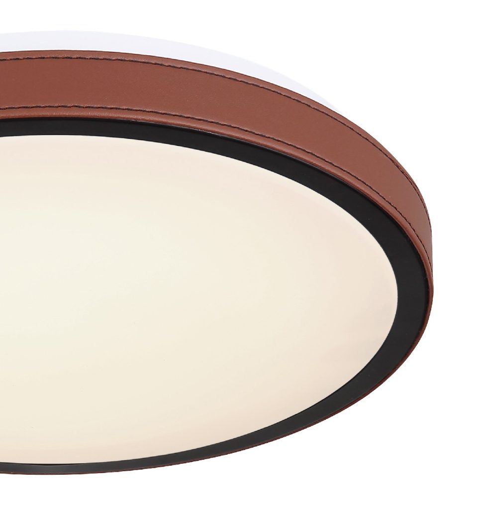 Ova okrugla plafonska lampa inspiriše svojom divnom kombinacijom boja. Opalna plastika, koja pokriva uključene LED sijalice, zatvorena je okruglim spoljašnjim kućištem napravljenim od elegantnog tamno braon metala (Ø30cm). Sa LED sijalicama, plafonska lampa obezbeđuje 637 lumena jako svetlo sa svetlom bojom od 3000 Kelvina toplo belo, 4500 Kelvina neutralno i 6000 Kelvina hladno bele boje.