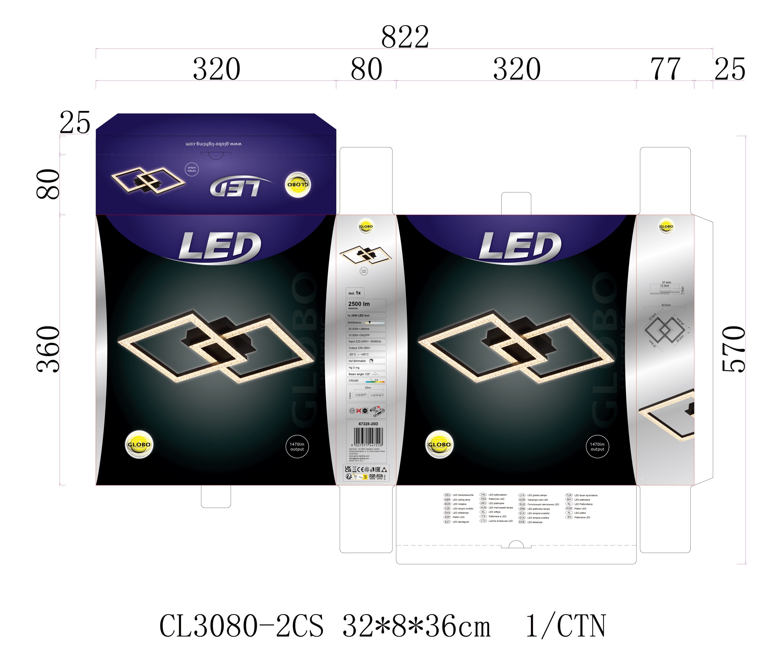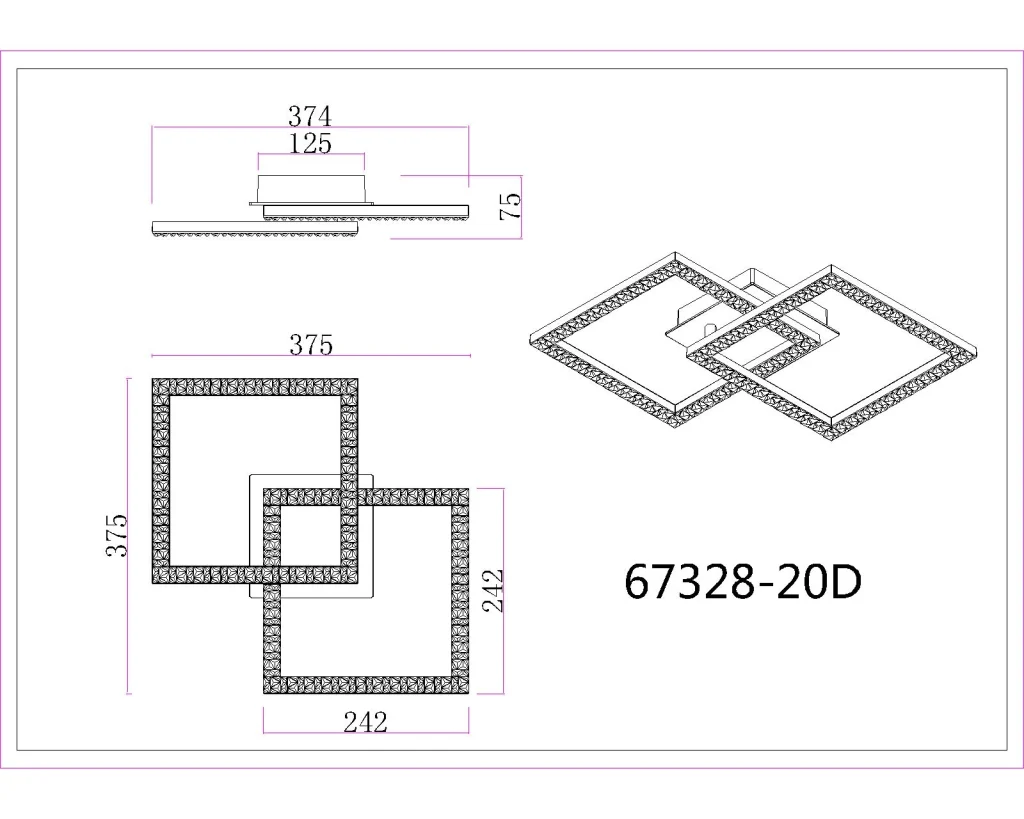 PLAFONSKA LAMPA PLASTIČNA CRNA MAT impresionira svojim pravougaonim dizajnom sa dva kvadrata postavljena jedan na drugi. Telo plafonske lampe je napravljeno od crne mat plastike, što joj daje moderan i jednostavan izgled. Abažur je napravljen od providnih plastičnih kristala, koji pružaju prelepo prelamanje svetlosti i stvaraju prijatan ambijent. Sa dužinom od 525 mm i širinom od 345 mm, ova plafonska lampa pruža dovoljno svetlosti za različite veličine prostorija. Ugrađena LED dioda ima snagu od 20 W sa izlazom od 1300 lumena, što pruža jarko osvetljenje u vašoj sobi. Boja svetlosti je 3000K, što stvara toplu i prijatnu atmosferu. PLAFONSKA LAMPA PLASTIČNA CRNA MAT je stilski i praktičan izbor za dnevne i radne prostore, kao i za hodnike i ulazne prostore.