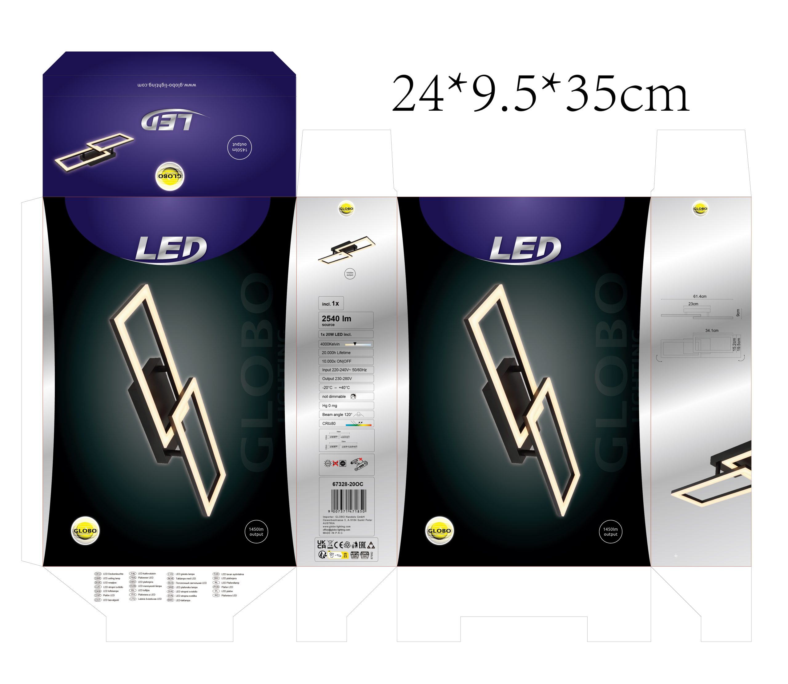 Plafonska lampa SAPENA ima moderan pravougaoni dizajn sa dva isprepletena pravougaonika koji će svakoj prostoriji dati elegantan i bezvremenski izgled. Telo je napravljeno od mat crnog metala i donosi stilski kontrast modernim dnevnim i radnim prostorima. Opal akrilni abažur pruža meku raspodelu svetlosti koja osvetljava prostoriju bez odsjaja i ravnomerno. Sa dužinom od 614 mm i širinom od 195 mm, SAPENA se harmonično uklapa u različite koncepte prostorija i obezbeđuje prijatno svetlo osvetljenje zahvaljujući svetlosnoj snazi od 1450 lumena. Boja svetlosti od 4000 Kelvina proizvodi neutralnu, jasnu svetlost, idealnu za stambene prostore ili kancelarije gde je potrebno dobro osvetljenje. Zahvaljujući energetski efikasnoj LED tehnologiji, SAPENA nudi izdržljivo i ekološki prihvatljivo rešenje za osvetljenje modernog života.