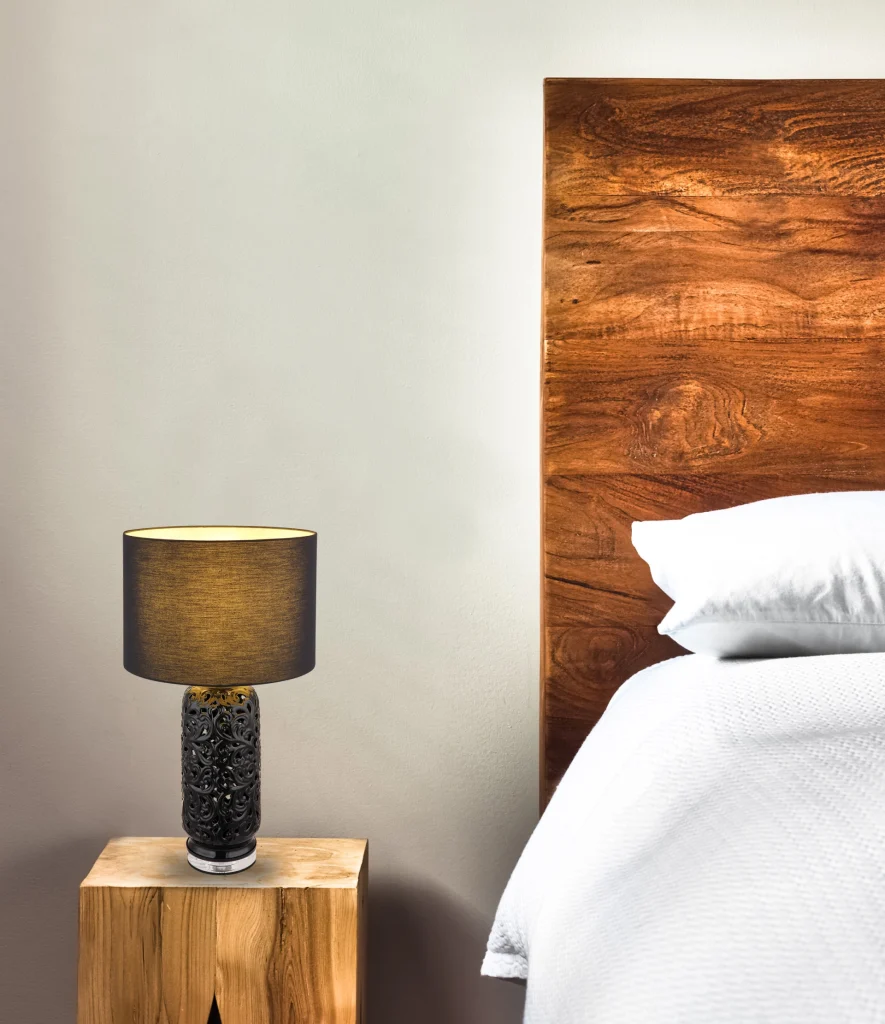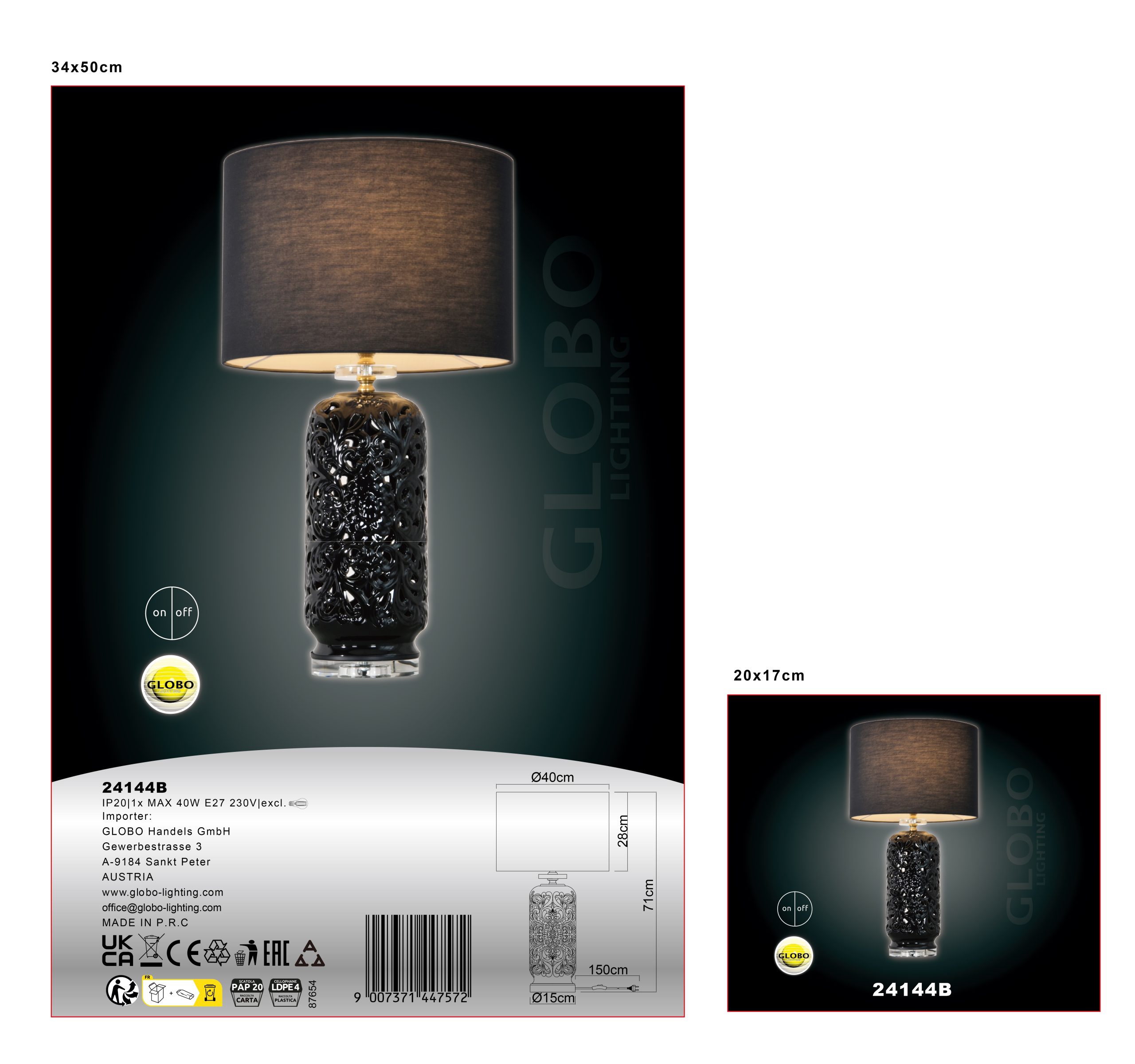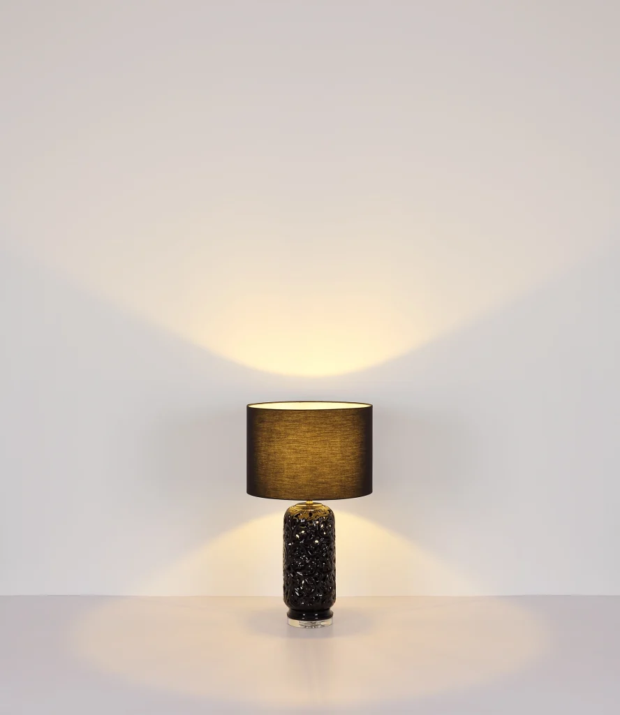 Crna keramička stona lampa sa okruglim teksturiranim postoljem je stilski i moderan dodatak za vaš dom. Keramičko telo u mat crnoj boji daje lampi elegantan izgled, dok okrugli abažur od crnog tekstila obezbeđuje prijatnu raspodelu svetlosti. Sa prečnikom od 400 mm i snagom od 40 W, ova stona lampa je idealna za upotrebu na komodi, noćnom stočiću ili stolu. Šik akrilni abažur u providnoj boji i hromirani metalni elementi daju lampi moderan i elegantan izgled. Praktični prekidač na kablu olakšava rukovanje lampom. Stona lampa je opremljena grlom E27, u koje se mogu umetnuti komercijalno dostupni izvori svetlosti. Ova stona lampa nije samo funkcionalni element osvetljenja, već i dekorativni dodatak koji će svakoj prostoriji dodati poseban dodir.