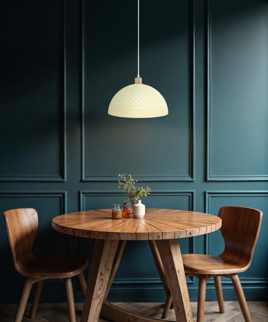 Okrugla viseća lampa SELMA kombinuje moderan, elegantan dizajn sa dekorativnom funkcionalnošću, dodajući stilske akcente iznad trpezarijskih stolova, radnih prostora ili dnevnih boravka. Okruglo telo napravljeno od mat metala boje peska prenosi visokokvalitetnu izradu i pruža stabilnu osnovu za svetiljku. Polusferični abažur od stakla boje šampanjca sa dekorativnim šarama ravnomerno raspoređuje svetlost, stvarajući prijatnu atmosferu bez odsjaja. Sa prečnikom od Ø350 mm, viseća lampa SELMA nudi kompaktan, ali upečatljiv izgled, idealan za pojedinačne tačke osvetljenja ili u kombinaciji sa više svetiljki. Svetiljka koristi sijalice E27 (nisu uključene), što omogućava individualni izbor izvora svetlosti. Zahvaljujući kombinaciji vrhunskog metala, elegantnog stakla i dekorativnog dizajna, okrugla viseća lampa SELMA je savršen izbor za svakoga ko traži funkcionalno osvetljenje sa estetskim akcentom, a istovremeno služi i kao dekorativni element u svakoj prostoriji.
