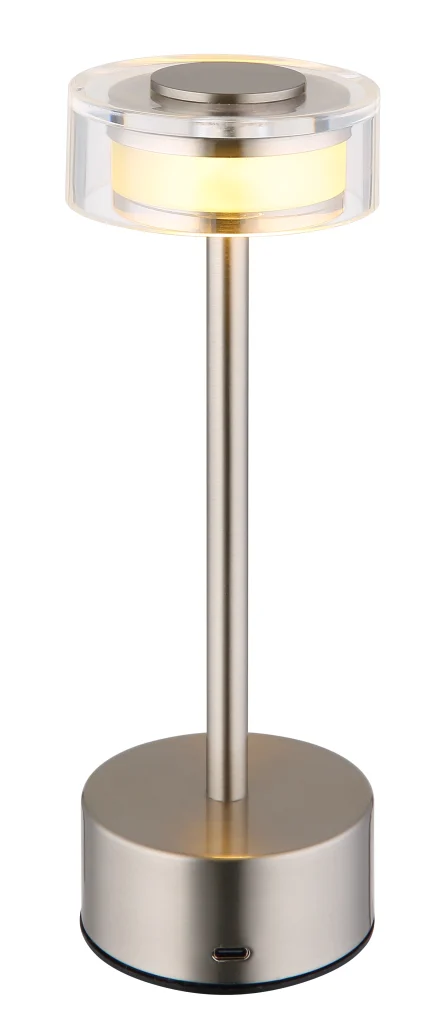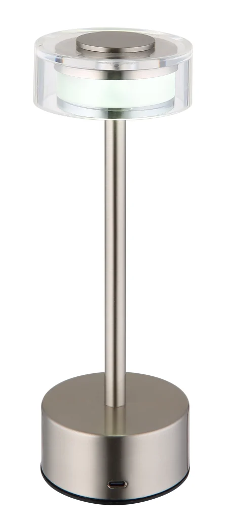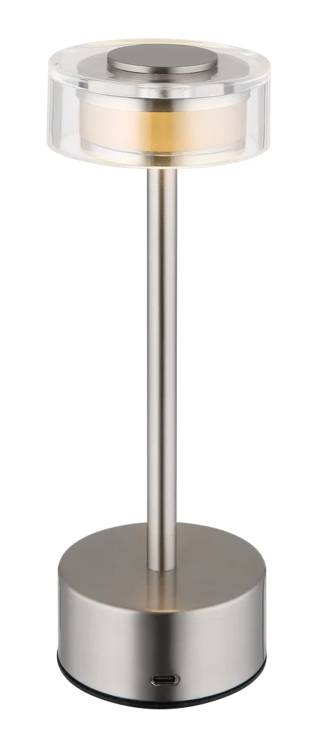 SHIRA stona lampa se predstavlja modernim i okruglim dizajnom. Njeno kućište napravljeno od mat nikl metala daje lampi savremeni izgled. Abažur je napravljen od providnog akrila, dimljenog akrila i opal plastike, što omogućava prijatnu difuziju svetlosti. Ova stona lampa nudi raznovrsne funkcije: može se prigušiti i ima kontinuirani dodirni dimer, kao i mogućnost fiksiranja boja. Sa izlazom od 108 lumena i promenljivom temperaturom svetlosti od 2700 K do 4000 K, osvetljenje se može individualno podešavati. SHIRA stona lampa dolazi sa USB kablom za punjenje i ima praktičnu funkciju uključivanja/isključivanja na dodir za lako uključivanje i isključivanje. Sa vremenom punjenja od oko 4 sata i vremenom rada od oko 6 sati, nudi pouzdan izvor svetlosti za širok spektar prilika. Pored toga, može se koristiti i tokom punjenja, što dodatno povećava njenu fleksibilnost.