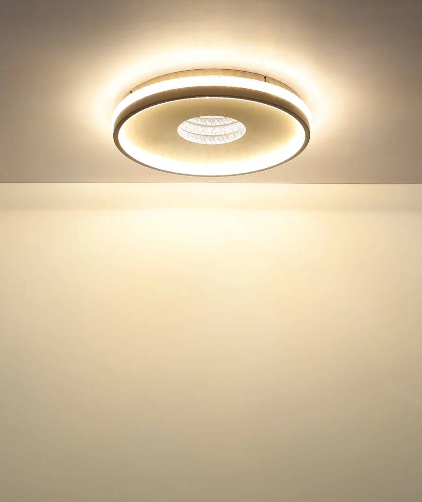 Okrugla plafonska lampa SHIRLEY oduševljava elegantnim kristalnim dekorom i zadivljujućim efektom tunela koji stvara impresivan 3D utisak osvetljenja. Telo, napravljeno od mat metala boje peska, daje svetiljci moderan, bezvremenski izgled. Abažur se sastoji od providnih plastičnih kristala i ogledalne plastike, koji reflektuju i prelamaju svetlost – za blistavu atmosferu u svakoj prostoriji. Sa prečnikom od 410 mm, SHIRLEY isporučuje 1170 lumena. Temperatura boje se može podesiti od toplo bele (2700 K) do dnevne bele (6500 K), prilagođavajući se svakom raspoloženju. Svetlo se može prigušiti i ima praktičnu funkciju memorije koja čuva poslednje podešavanje. Uključeni daljinski upravljač vam omogućava da fiksirate boje i aktivirate nežno noćno svetlo. Sa energetski efikasnom LED tehnologijom, SHIRLEY je stilsko i svestrano rešenje za osvetljenje modernog životnog prostora.