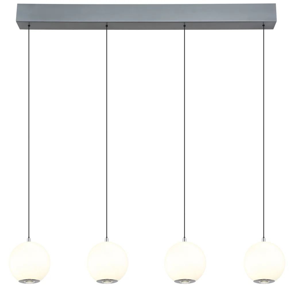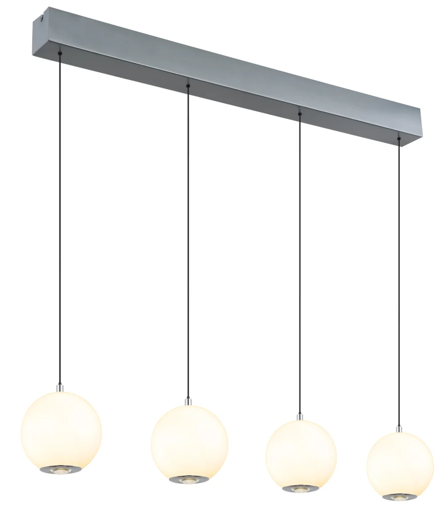 Viseća lampa SIMONS kombinuje moderan dizajn sa visokom funkcionalnošću i predstavlja idealno rešenje za osvetljenje različitih veličina prostorija. Telo napravljeno od mat sivog metala i četiri opalne staklene kugle sa LED sočivima obezbeđuju ravnomernu i prijatnu raspodelu svetlosti. Sa dužinom od 990 mm i širinom od 150 mm, lampa nudi velikodušan svetlosni izlaz od 2460 lumena, što je savršeno za veće prostorije poput trpezarija ili dnevnih soba. Temperatura boje se može fleksibilno podesiti između 3000 K i 6000 K, tako da možete podesiti svetlost od toplo bele do dnevne bele po potrebi. Zahvaljujući praktičnoj funkciji memorije, poslednje izabrano podešavanje se čuva. Uključujući LED diode, SIMONS obezbeđuje energetski efikasno i dugotrajno osvetljenje. Stilski dizajn sa hromiranim aluminijumskim akcentima i Jo-Jo mehanizmom čini ovu viseću lampu pravim vrhuncem u svakoj prostoriji.