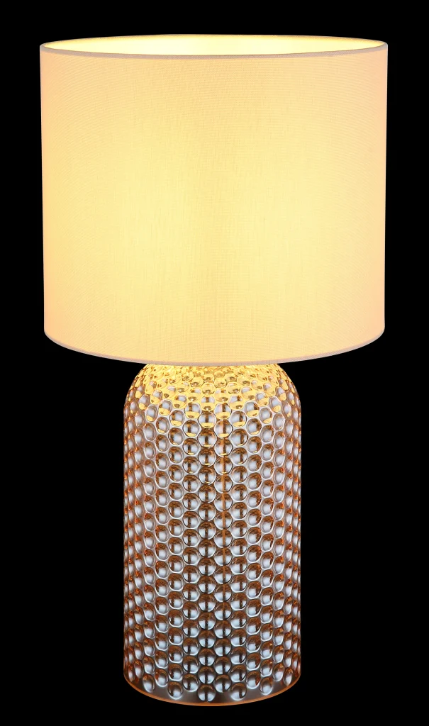 Stona lampa SOFIA impresionira svojom elegantnom kombinacijom teksturirane staklene osnove i cilindričnog tkaninskog abažura u bojama šampanjca. Telo napravljeno od stakla boje šampanjca daje lampi luksuzan, ali diskretan izgled koji se savršeno uklapa u različite stilove života. Odgovarajući tkaninski abažur obezbeđuje meku, toplu raspodelu svetlosti i stvara prijatnu atmosferu u svakoj prostoriji. Sa prečnikom od 265 mm, SOFIA je savršen izbor za dnevne sobe ili spavaće sobe i može se lako uključiti i isključiti zahvaljujući praktičnom prekidaču na kablu. Svetiljka je opremljena grlom E27, koje omogućava upotrebu različitih sijalica za individualno podešavanje intenziteta svetlosti. Bilo da je na bočnom stočiću, komodi ili noćnom stočiću – stona lampa SOFIA postavlja elegantne akcente i stvara atmosferski ambijent.
