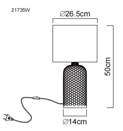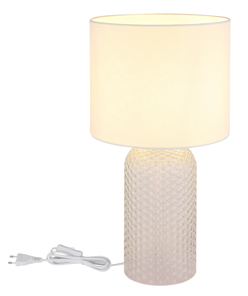 Stona lampa SOFIA kombinuje eleganciju i funkcionalnost u stilskom dizajnu. Sa svojim belim staklenim postoljem, koje impresionira svojom finom strukturom, i cilindričnim platnenim abažurom u elegantnoj beloj boji, lampa se besprekorno uklapa u svaki moderni enterijer. Veliki prečnik od Ø:265 mm obezbeđuje ravnomernu i prijatnu raspodelu svetlosti, idealnu za svaku dnevnu sobu ili radnu sobu. Prekidač na kablu omogućava lako rukovanje i obezbeđuje praktično uključivanje i isključivanje. Grlo E27 nudi fleksibilnost u izboru izvora svetlosti i omogućava podešavanje osvetljenosti prema vašim potrebama. Bilo da je na noćnom stočiću, radnom stolu ili bočnom stočiću – stona lampa SOFIA postavlja ukusne akcente i stvara prijatnu atmosferu.
