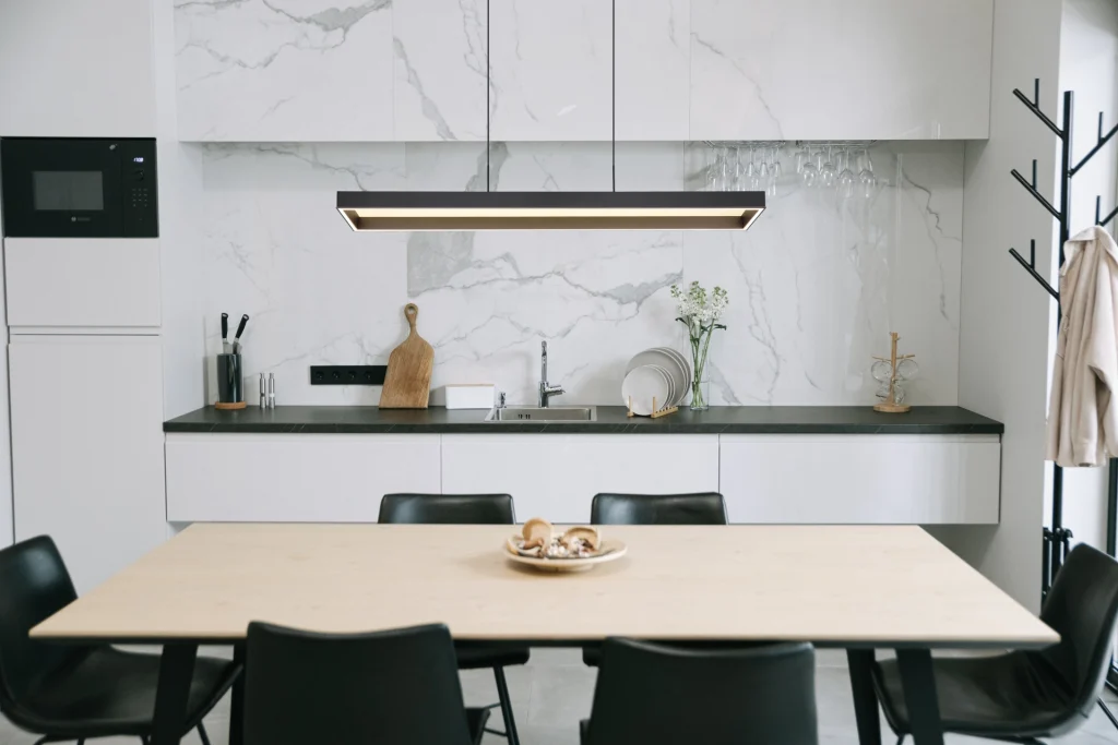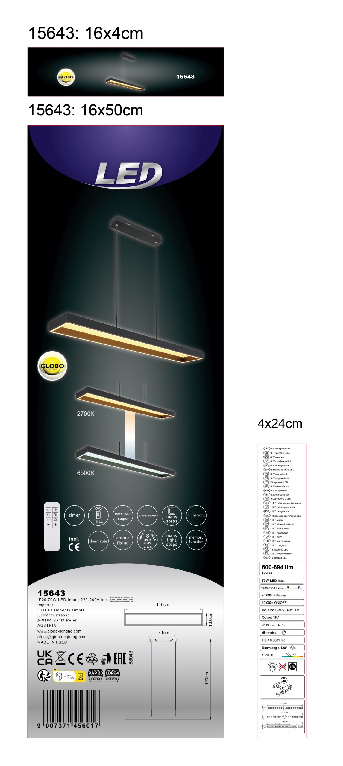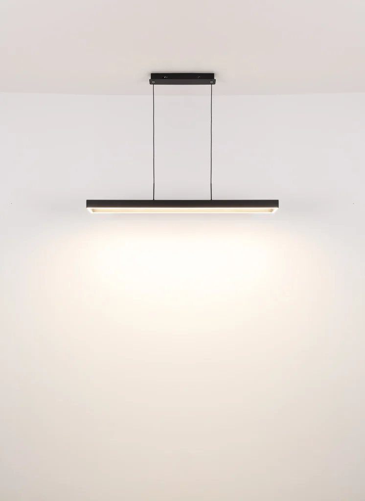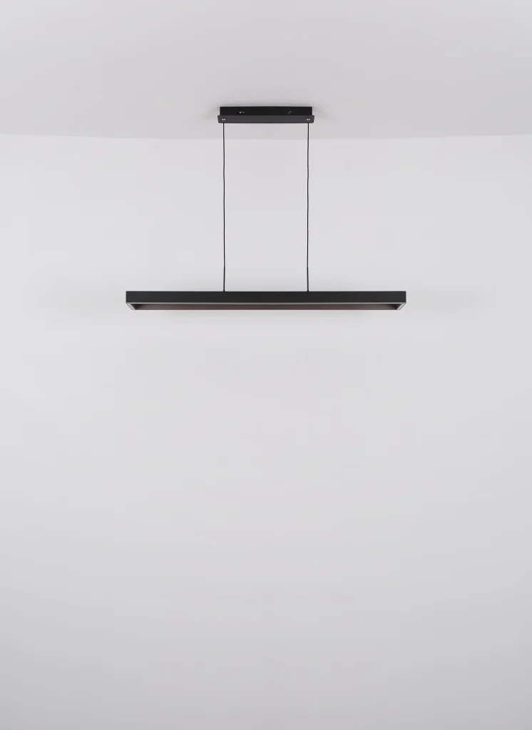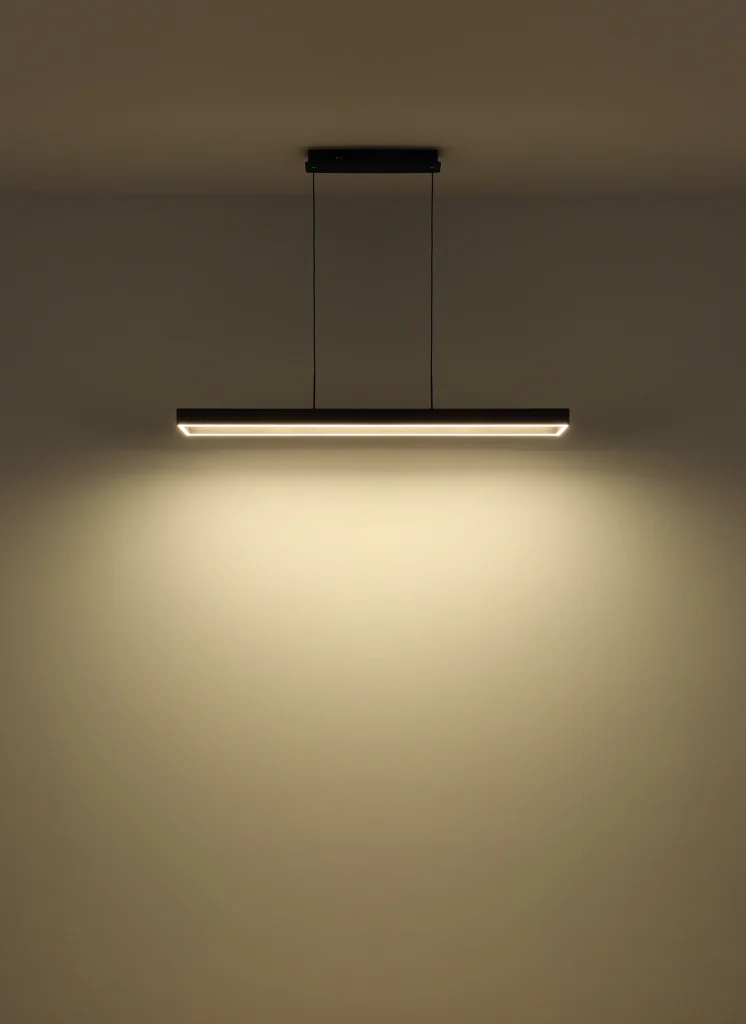 Moderna viseća lampa SOLA u obliku ravnog pravougaonog štapa je savršeno rešenje za osvetljenje vašeg doma. Telo je napravljeno od crnog mat metala, a abažur je napravljen od crnog mat metala, antracit brušenog aluminijuma i opal akrila, što lampi daje elegantan izgled. Opremljena snažnom, prigušljivom LED diodom i daljinskim upravljačem, viseća lampa nudi širok spektar opcija osvetljenja. Možete podesiti osvetljenost u nekoliko nivoa pomoću zidnog prekidača, fiksirati boje, pa čak i koristiti funkciju memorije. Sa dužinom od 1160 mm, širinom od 186 mm i izlazom od 5492 lumena, svetiljka pruža dovoljno svetlosti u vašoj sobi. Podesivi CCT od 2700K do 6500K vam omogućava da podesite boju svetlosti po želji. Ova viseća lampa ne samo da nudi praktično rešenje za osvetljenje, već i moderan dizajn za vaš dom.