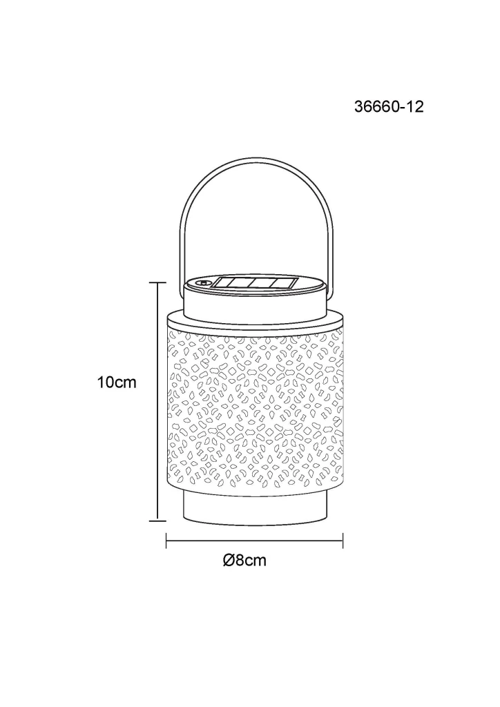 SOLARNA lampa nudi raznovrsno osvetljenje za vaš spoljašnji prostor i može se koristiti za visenje ili stajanje. Sa svojim cilindričnim dizajnom i prečnikom od 80 mm, lampa je elegantan dodatak za baštu, terasu ili balkon. Metalno kućište i plastični abažur obezbeđuju robusnu i izdržljivu konstrukciju. Lampa je opremljena praktičnim prekidačem pod pritiskom i nudi prijatnu boju svetlosti od 3000 K, što stvara toplu i ugodnu atmosferu. Lampa je dostupna u tri atraktivne boje: pesak, bledo zelena i ružičasta, pružajući stilsko akcentno osvetljenje. Sa klasom zaštite IP44, solarna lampa je otporna na vremenske uslove i idealna za spoljašnju upotrebu. Napaja se solarnom energijom na ekološki prihvatljiv način, što je čini energetski efikasnim izborom. Uključujući LED diode, nudi pouzdano osvetljenje bez dodatnih troškova za struju.
