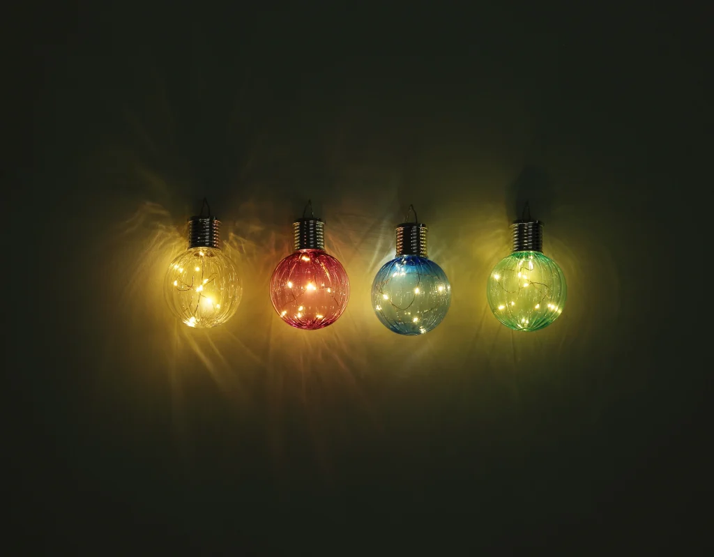 Zapanjujuća solarna lampa koja će vašem prostoru dodati toplu atmosferu. Lampa je napravljena od srebrnog metala i hromirane plastike koja nežno filtrira svetlost. Viseća kugla je napravljena od plastike i dostupna je u zelenoj, plavoj, ljubičastoj i providnoj boji. Sa prečnikom od 80 mm i visinom od 135 mm, ova solarna lampa je prava atrakcija u svakoj prostoriji. Klizni prekidač omogućava lako rukovanje. Ova lampa se isporučuje sa 10x LED dioda od 0,06 W 3 V. Baterija (LR44 40 mAh 1,2 V) je takođe uključena. Nadamo se da ćete sa ovom solarnom lampom podići svoje sobe na novi nivo!