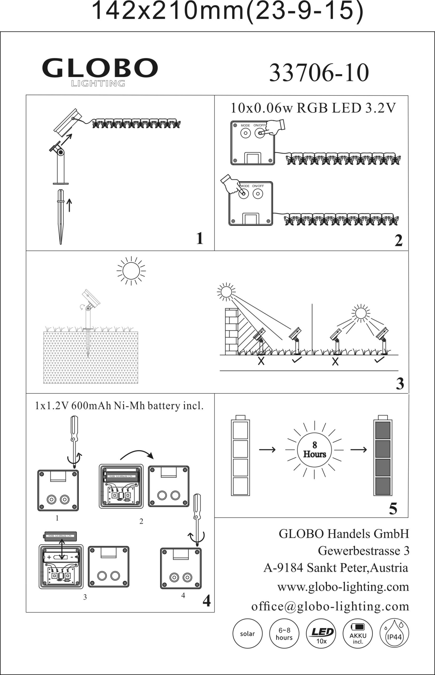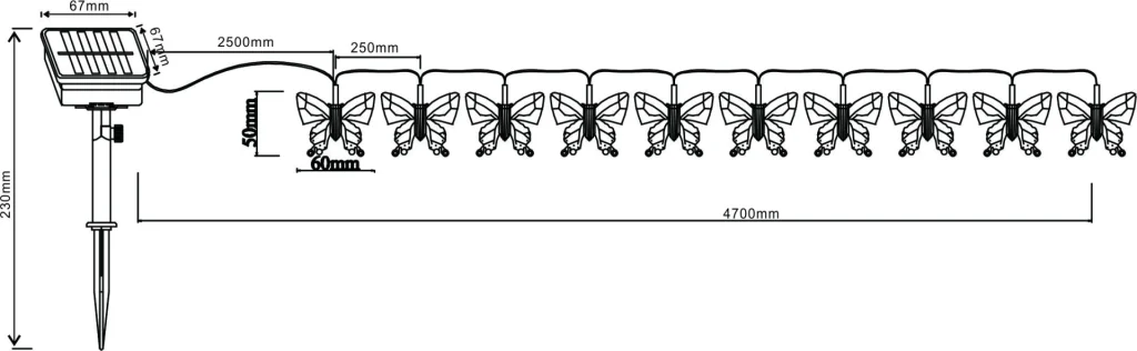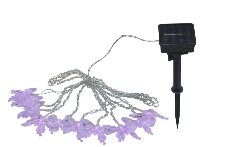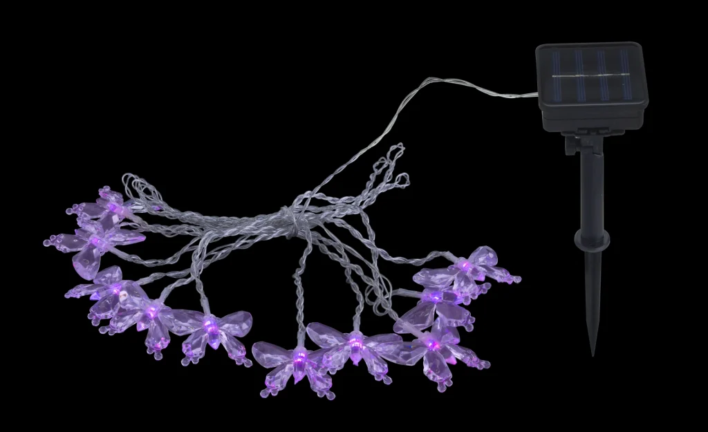 Ovaj solarni niz svetala je nešto veoma posebno. Ukupno 10 lampi, koje se nalaze na lancu dugom 4,7 metara, svetle kroz menjač boja u mnogo različitih boja i tako stvaraju prijatan ambijent. Celu stvar upotpunjuje oblik lampi u obliku leptira. Zahvaljujući stepenu zaštite IP44, pogodan je i za spoljašnju upotrebu.