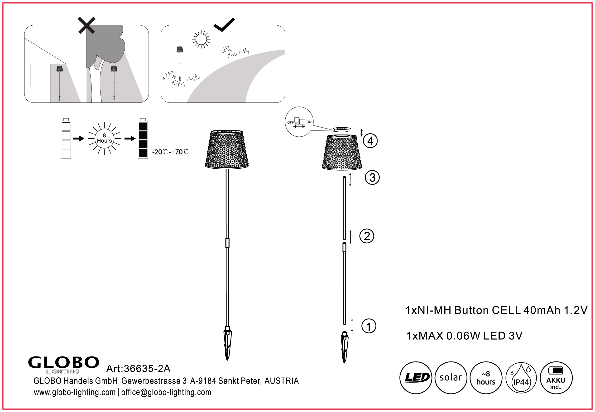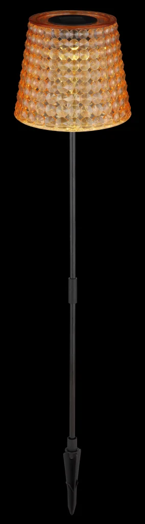 Zapanjujuća solarna lampa koja će vašem prostoru dodati toplu atmosferu. Lampa je napravljena od crne mat plastike i fascinantne plastike zlatne boje koja nežno filtrira svetlost. Kristalni abažur je jedinstven i daje lampi poseban dodir. Sa prečnikom od 125 mm i visinom od 600 mm, ova solarna lampa je prava atrakcija u svakoj prostoriji. Klizni prekidač omogućava lako rukovanje. Ova svetiljka se isporučuje sa 1x LED diodom od 0,06 W 3 V. Baterija (40 mAh 1,2 V) je takođe uključena. Ovaj set sadrži 2 dela solarne lampe. Nadamo se da ćete sa ovom solarnom lampom podići svoje sobe na novi nivo!