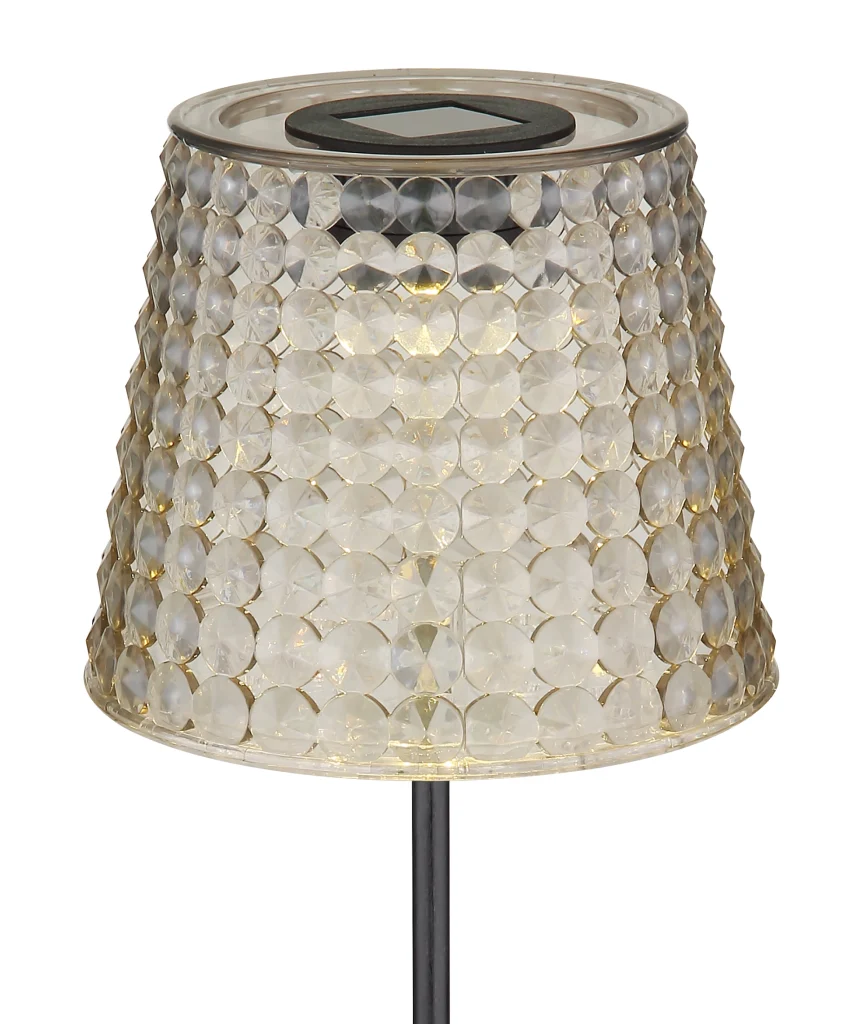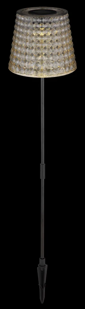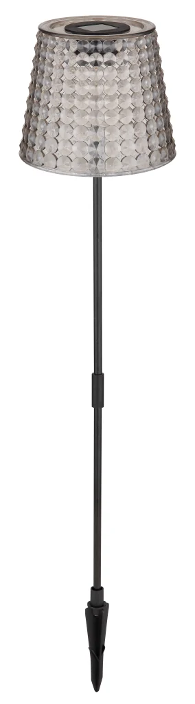 Zapanjujuća solarna lampa koja će vašem prostoru dodati toplu atmosferu. Lampa je napravljena od crne mat plastike i fascinantne plastike boje dima koja nežno filtrira svetlost. Abažur sa kristalnim izgledom je jedinstven i daje lampi poseban dodir. Sa prečnikom od 125 mm i visinom od 600 mm, ova solarna lampa je prava atrakcija u svakoj prostoriji. Klizni prekidač omogućava lako rukovanje. Ova svetiljka se isporučuje sa 1x LED diodom od 0,06 W 3 V. Baterija (40 mAh 1,2 V) je takođe uključena. Ovaj set sadrži 2 dela solarne lampe. Nadamo se da ćete sa ovom solarnom lampom podići svoje sobe na novi nivo!