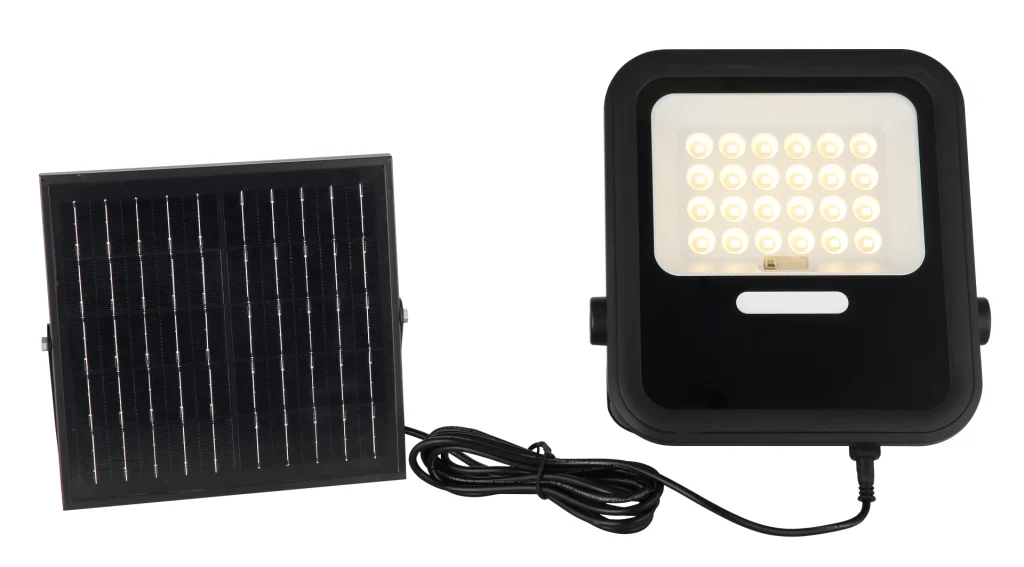 Pravougaoni građevinski reflektor SOLAR LIGHT PLASTIC BLACK MATT ne impresionira samo svojim tankim i modernim izgledom, već i praktičnom funkcionalnošću. Opremljen odvojenim solarnim panelom, ovaj reflektor omogućava fleksibilno postavljanje i obezbeđuje efikasno punjenje integrisane LED diode. Telo napravljeno od crne mat plastike, aluminijuma i metala daje ovom građevinskom reflektoru visokokvalitetan izgled. Abažur od prozirnog stakla obezbeđuje ravnomernu raspodelu svetlosti i prijatno osvetljenje. Sa priloženim daljinskim upravljačem, ovaj reflektor se može prigušiti i samim tim individualno prilagoditi. Sa snagom od 6,5 W i impresivnim izlazom od 800 lumena, ovaj reflektor nudi jako svetlo sa temperaturom boje od 3000K. Klasifikacija IP65 garantuje zaštitu od prašine i mlazeva vode, što ovaj građevinski reflektor čini idealnim za upotrebu u zatvorenom i na otvorenom prostoru. Otkrijte efikasno i stilsko rešenje za osvetljenje vašeg doma ili građevinskog projekta uz ovaj građevinski reflektor.