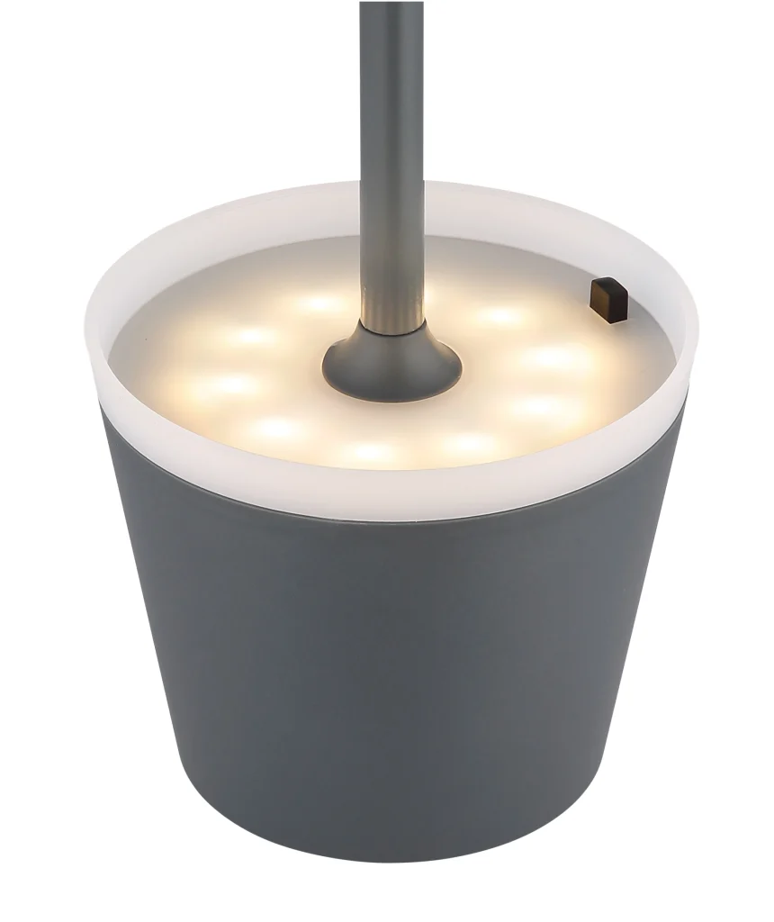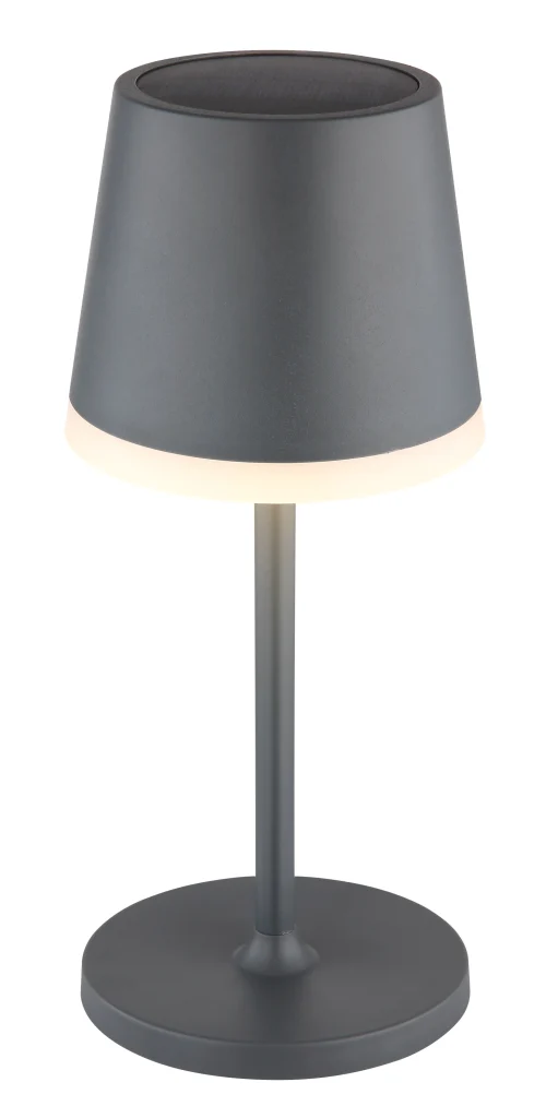 Okrugla stona lampa u antracit boji metalnog dizajna je stilski dodatak svakom životnom prostoru. Sa prečnikom od 110 mm i snagom od 0,06 W, ova solarna lampa nudi osvetljenost od 50 lumena na toploj temperaturi svetlosti od 3000 K. Telo od mat antracit metala i abažur od satenske plastike daju lampi moderan i prefinjen izgled. Klizni prekidač omogućava lako rukovanje i osigurava da se udobnost svetlosti može regulisati po želji. IP44 sertifikat garantuje zaštitu od prskanja vode i stoga je pogodan i za upotrebu u kupatilu ili na otvorenom. Pored toga što je dekorativna, ova okrugla stona lampa je energetski efikasna i ekološki prihvatljiva zahvaljujući solarnom panelu koji lampi obezbeđuje besplatnu solarnu energiju.