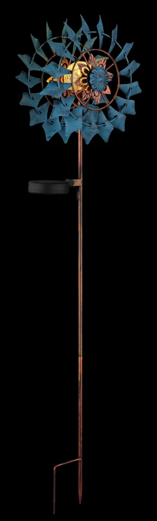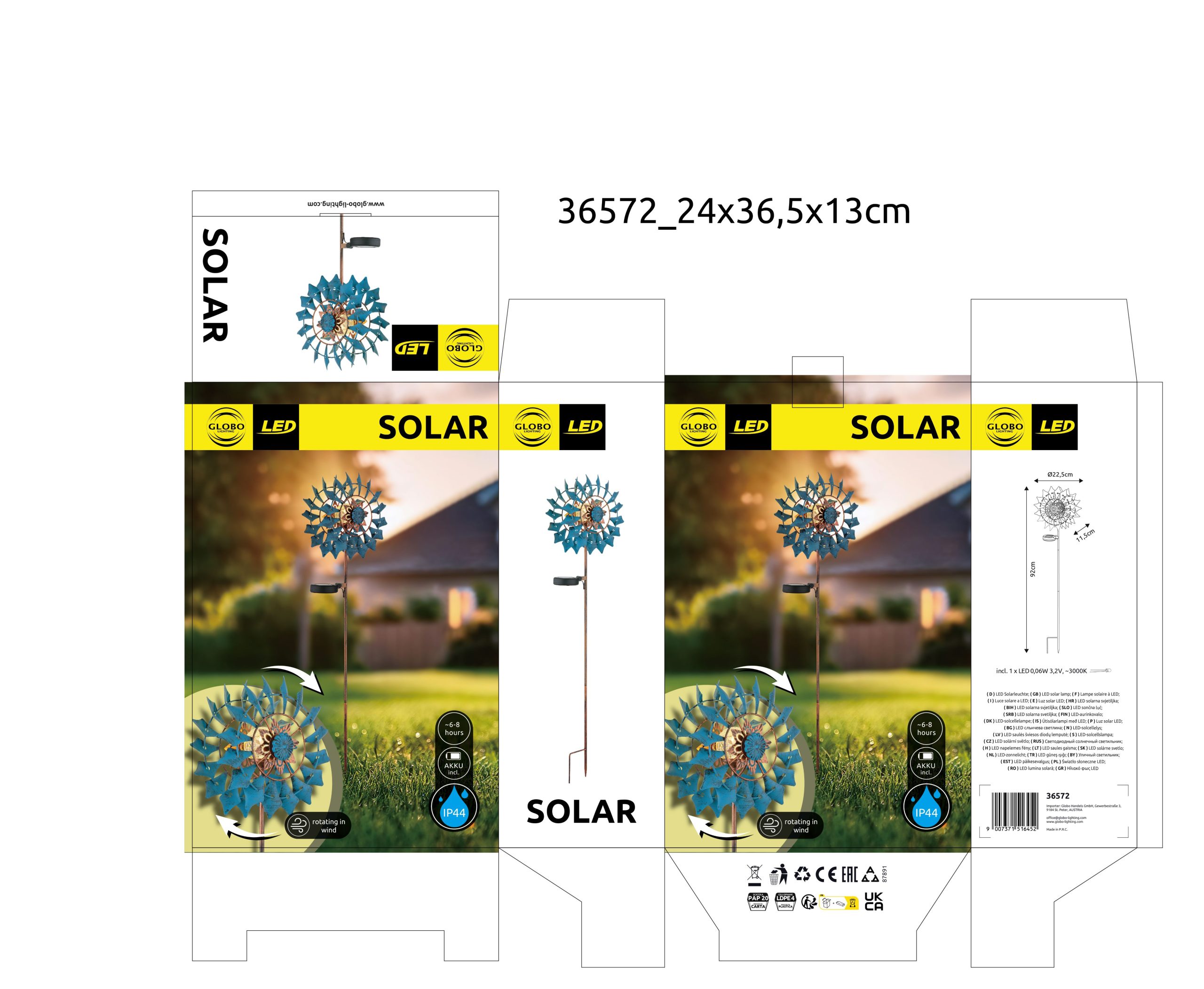 Solarna lampa sa metalnom zlatnom patinom kombinuje šarmantan dizajn sa modernom solarnom tehnologijom i postavlja stilske akcente u vašu baštu ili spoljašnji prostor. Ova solarna lampa okruglog dizajna impresionira svojom jedinstvenom vetroturbinom na uzemljenoj tački, koja je od metala antičke zlatne boje. Abažur kombinuje zlatne i antičke metalne akcente sa dodirom plavog metala, dok staklena kugla sa efektom pucanja stvara intrigantno svetlosno raspoloženje. Svetiljka je opremljena LED diodom koja pruža toplu temperaturu svetlosti od 3000 K i posebno je otporna na vremenske uslove zahvaljujući svojoj IP44 klasi zaštite. Sa kompaktnim dimenzijama od 225 mm x 115 mm i praktičnim dugmetom, ova solarna lampa je i funkcionalna i dekorativna. Idealna za dodavanje elegantnog i bezvremenskog dodira vašem spoljašnjem prostoru!