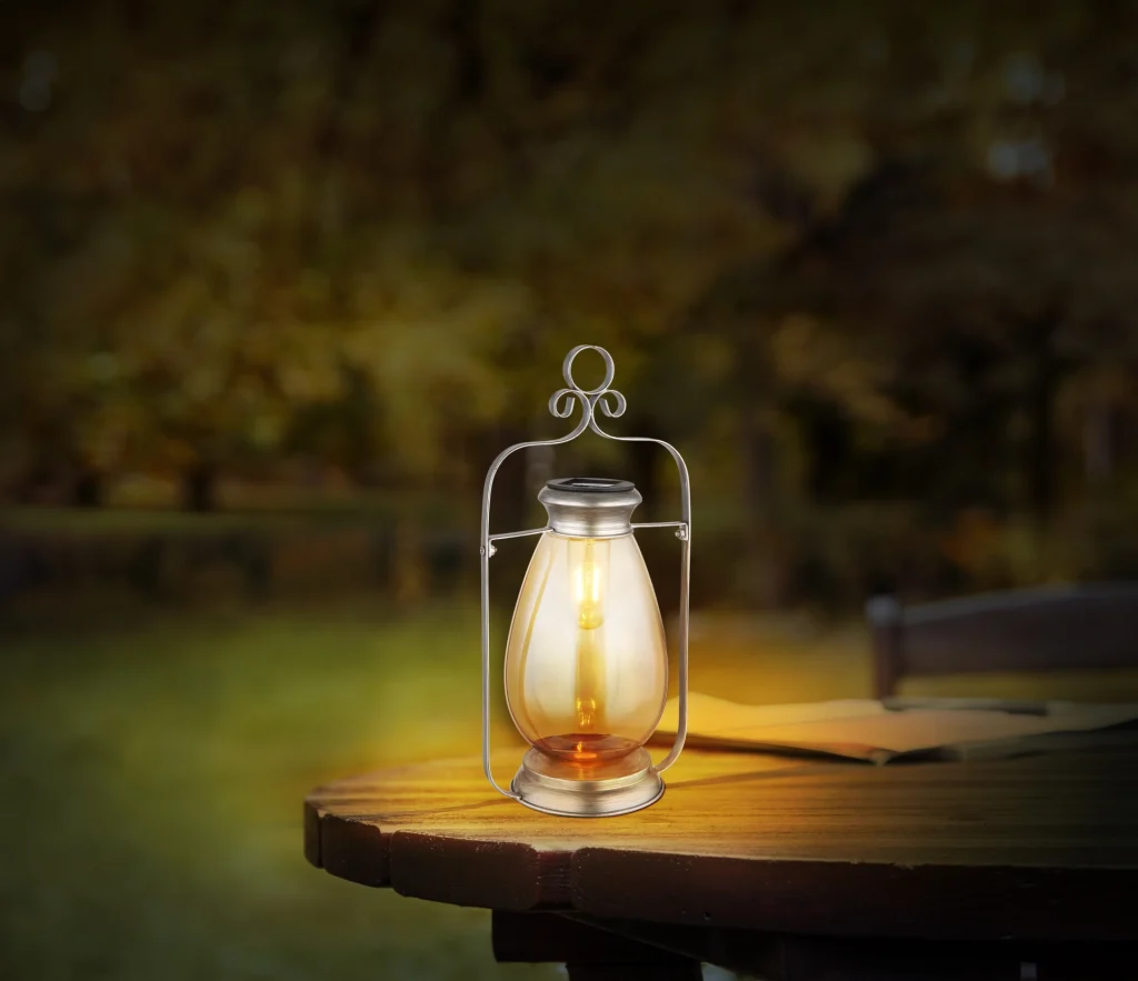 Rustični fenjer napravljen od srebrnog metala sa antičkim izgledom je svestran i šarmantan dekorativni komad za vaš dom. Ovaj solarni fenjer ima LED diodu koja štedi energiju snage 0,06 W i toplo belo svetlo sa temperaturom boje od 3000 K. Abažur od ćilibarnog stakla daje fenjeru ugodnu atmosferu i pruža prijatno osvetljenje. Bilo da ga okačite na kuku ili postavite na sto, fenjer se može fleksibilno postaviti i pogodan je za upotrebu u zatvorenom i na otvorenom prostoru. Sa dugmetom za lako rukovanje i IP44 zaštitom za upotrebu na otvorenom, ovaj solarni fenjer je istovremeno praktičan i dekorativan. Unesite udobnost u svoj dom pomoću ovog stilskog fenjera i uživajte u toploj svetlosti koju širi.