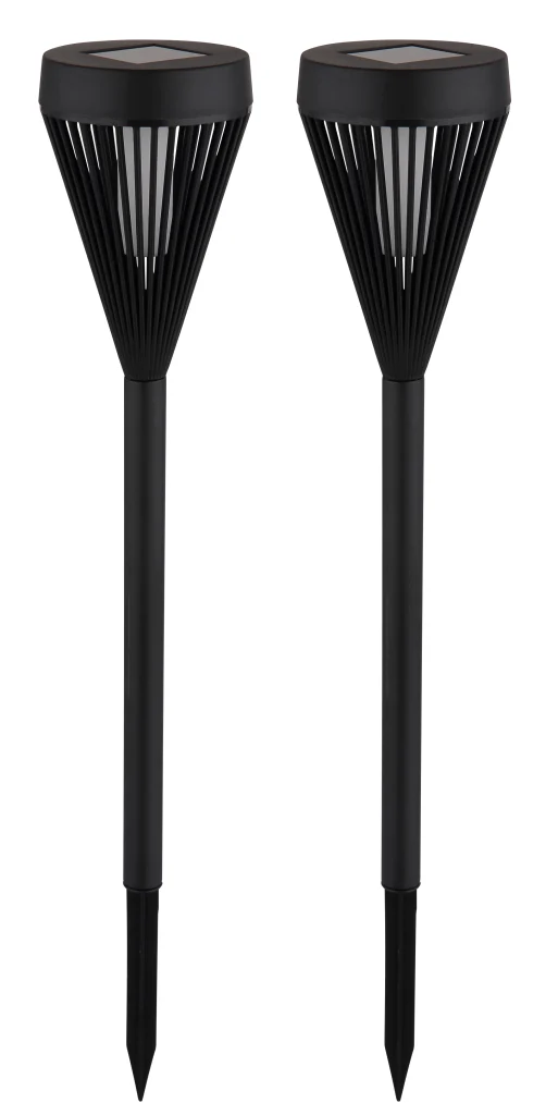 Komplet od 2 solarna svetla sa efektom vatre pruža atmosfersko osvetljenje u spoljašnjem prostoru. Svetla su okruglog oblika i napravljena su od čvrste crne mat plastike koja obuhvata i telo i abažur. Abažur je napravljen od crne plastike i opal plastike za prijatnu difuziju svetlosti. Sa prečnikom od 75 mm, svetiljke se savršeno uklapaju u različite dizajne bašta i pejzaža. LED tehnologija pruža toplu svetlosnu nijansu od 1600 K, što stvara impresivan efekat vatre. Svetla su sertifikovana kao IP44, što ih čini otpornim na vremenske uslove i idealnim za upotrebu na otvorenom. Prekidač pod pritiskom omogućava lako rukovanje. Ovaj set kombinuje funkcionalnost sa atraktivnim dizajnom i stvara prijatnu atmosferu za svaki spoljašnji prostor.