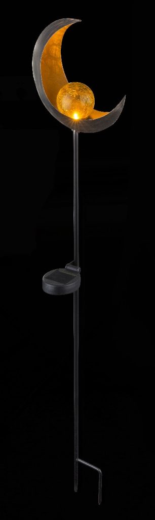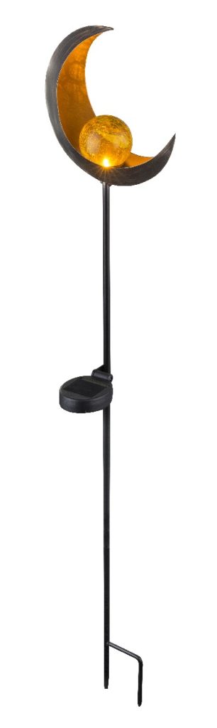 Ova očaravajuća bronzano obojena solarna lampa donosi svetlost na bilo koje mesto u vrtu ili popločanom dvorištu. Pošto ima vrh koji se pobada u zemlju, položaj ove solarne svetlosti može se menjati po želji u zavisnosti od raspoloženja. Ova solarna lampa u obliku polumeseca sa osvetljenom staklenom kuglom donosi romantiku vašem otvorenom prostoru. Zahvaljujući bateriji, solarna lampa se puni tokom dana, a zatim pretvara baštu u velnes zonu u sumrak. Sa zaštitnom klasom IP44, ovo solarno svetlo je idealno pogodno za upotrebu na otvorenom.
