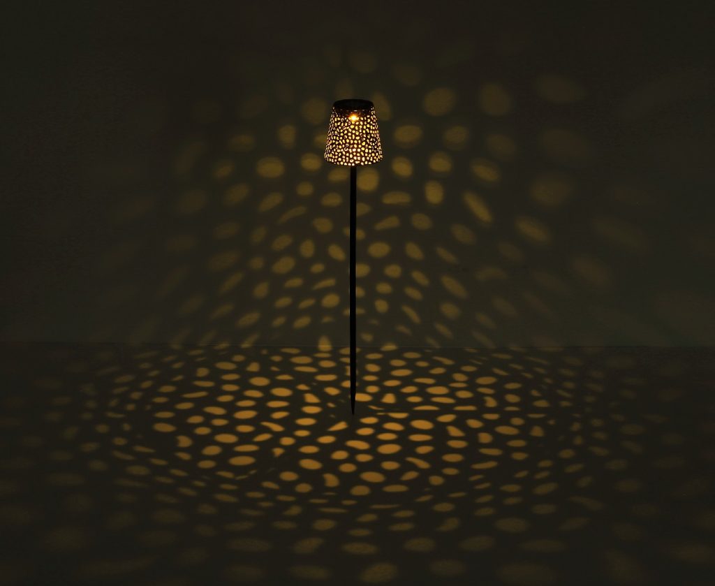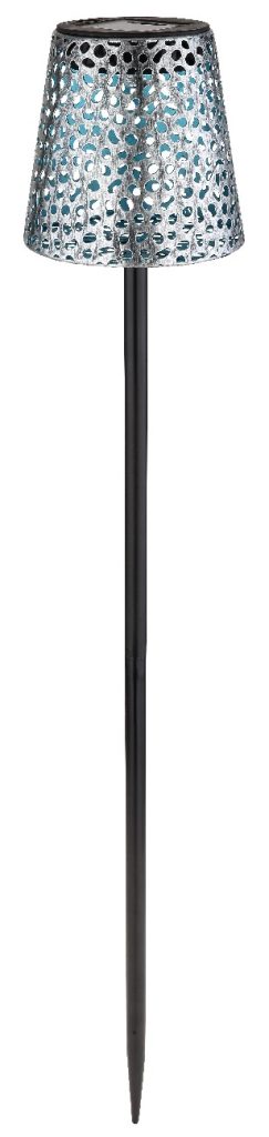 Ova velika solarna lampa inspiriše prelepim dizajnom. Crni mat metalni štap prodire iz zemlje i završava se na visini od 70 cm sa oblikovanim srebrnim abažurom sa odličnim ukrasnim detaljima. Pomoću integrisanog LED-a obezbeđuje 3000 Kelvina toplu belu svetlost i tako osigurava prijatnu atmosferu. Model ima prekidač za uključivanje ili isključivanje svetla. Zbog IP44 stepena zaštite od prskanja vode, savršen je za upotrebu na otvorenom.