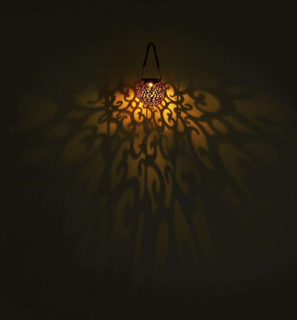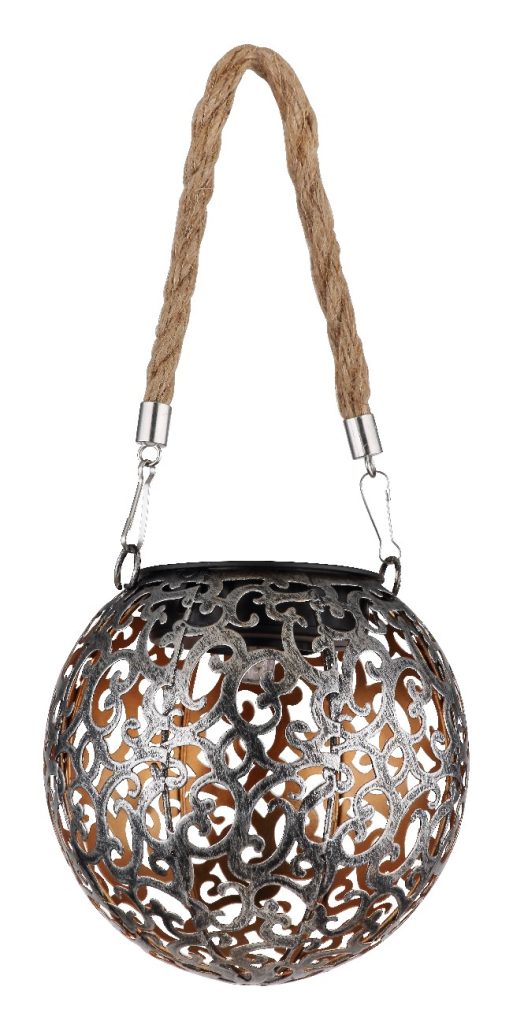 Solarna lampa, napravljena od srebrno-sivog metala i bakarne boje, starinskog izgleda. Može da se okači uz pomoć kanapa od konoplje, atraktivan je i ekološki dodatak svakom otvorenom prostoru. Lampa ima prekidač i uključene AAA baterije, svetlo je lako za korišćenje i nudi IP44 zaštitu od prskanja vode. Lampa se može okačiti ili postaviti i izmeriti ø 120mm x H 260mm. Integrisani LED sa 0.06W i 3000K pruža prijatno svetlo u mraku.