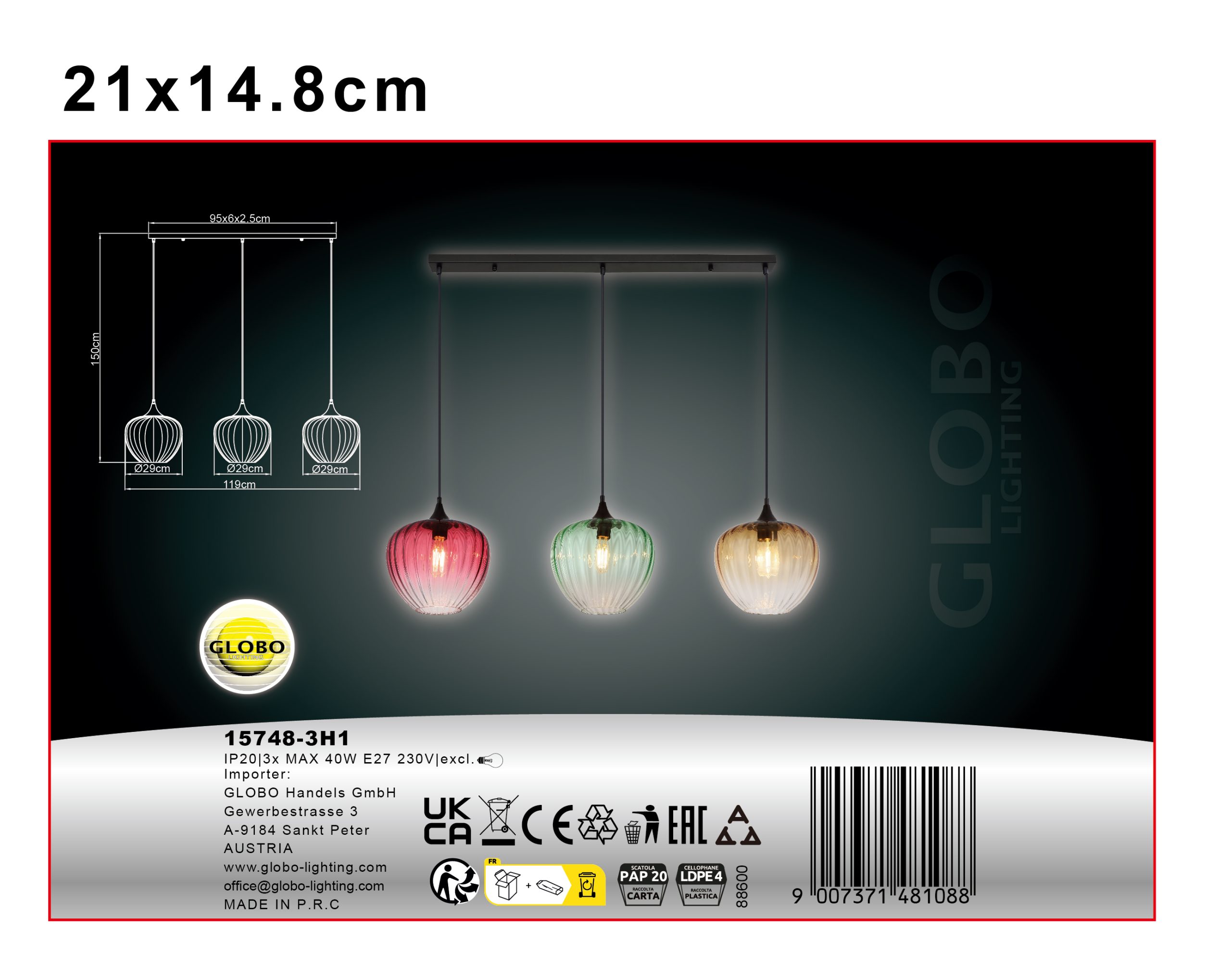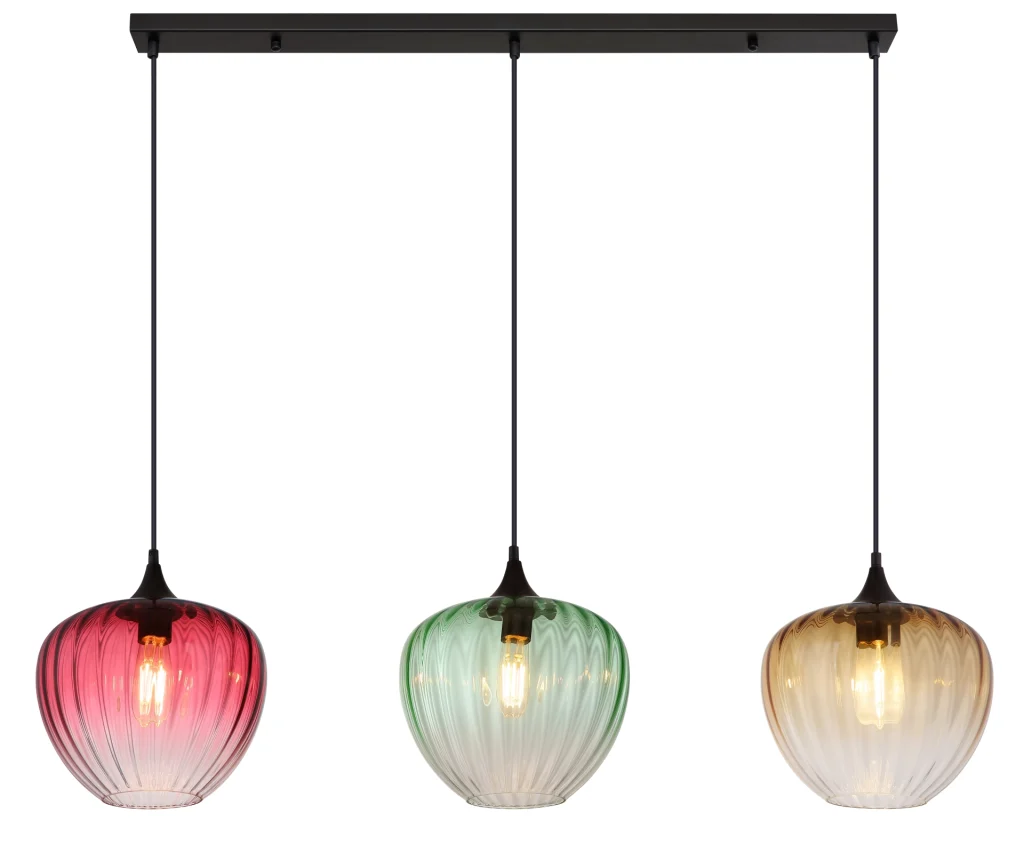Viseća lampa SOLVEIG od crnog mat metala dodaje dašak elegancije svakoj prostoriji. Stakla u zelenoj, crvenoj i ćilibarnoj boji koja se protežu preko providnog stakla stvaraju fascinantnu igru boja i daju prostoriji poseban pečat. Kroz žlebove na staklima, svetlost se prelama na jedinstven način i stvara prijatnu atmosferu. Crni PVC kabl savršeno dopunjuje moderan dizajn viseće lampe SOLVEIG. Ova svetiljka nije samo funkcionalni element osvetljenja, već i dekorativno umetničko delo koje daje posebnu harizmu dnevnim sobama, trpezarijama ili čak komercijalnim prostorima kao što su barovi ili restorani. Sa SOLVEIG, možete se fokusirati na stil i estetiku u svom domu.