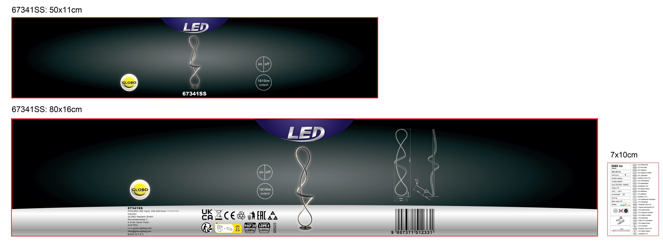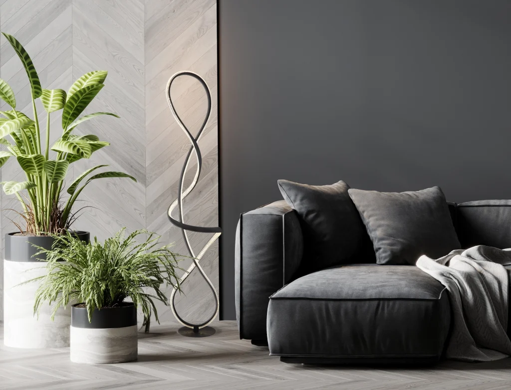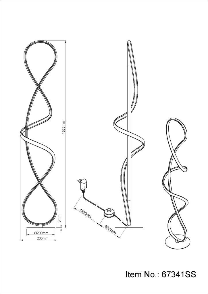 Podna lampa SWIRL unosi elegantan šarm u svaku prostoriju svojim zakrivljenim dizajnom i sofisticiranim lukovima i čvorovima. Telo od mat crnog metala i abažur od mat crnog aluminijuma pružaju moderan i elegantan izgled. Prozirna plastika i akrilni kristali hvataju svetlost i impresivno je reflektuju. Sa visinom od 260 mm i širinom od 200 mm, ova podna lampa je kompaktna i svestrana. Praktični nožni prekidač na kablu omogućava lako rukovanje. SWIRL nudi jačinu svetla od 1810 lumena i temperaturu boje od 4000 K, što pruža prijatno i ravnomerno osvetljenje. Idealna za moderne dnevne sobe ili kancelarije, podna lampa SWIRL kombinuje estetski dizajn sa visokom funkcionalnošću.
