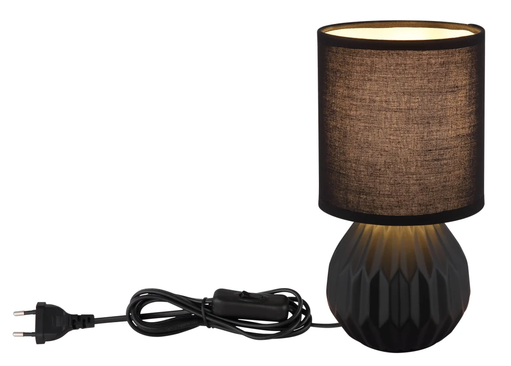 Stona lampa SYLAS kombinuje bezvremensku eleganciju sa modernim dizajnom. Sa svojim lukovičastim keramičkim postoljem u elegantnoj crnoj boji i cilindričnim platnenim abažurom u odgovarajućoj crnoj boji, ova lampa postavlja stilske akcente u svakoj prostoriji. Elegantno crno telo se savršeno usklađuje sa nežnim abažurom, što obezbeđuje nežnu i ravnomernu raspodelu svetlosti. Sa prečnikom od 120 mm, stona lampa je kompaktna i idealna je za stolove, noćne stočiće ili male bočne stočiće. SYLAS lampa ima praktičan prekidač na kablu koji omogućava lako upravljanje svetlom. E14 grlo nudi fleksibilnost u izboru sijalice. Bilo da se nalazite u modernom potkrovlju, elegantnoj dnevnoj sobi ili klasičnoj spavaćoj sobi, SYLAS stona lampa pruža stilsko osvetljenje i postavlja elegantne akcente u vašem životnom prostoru.