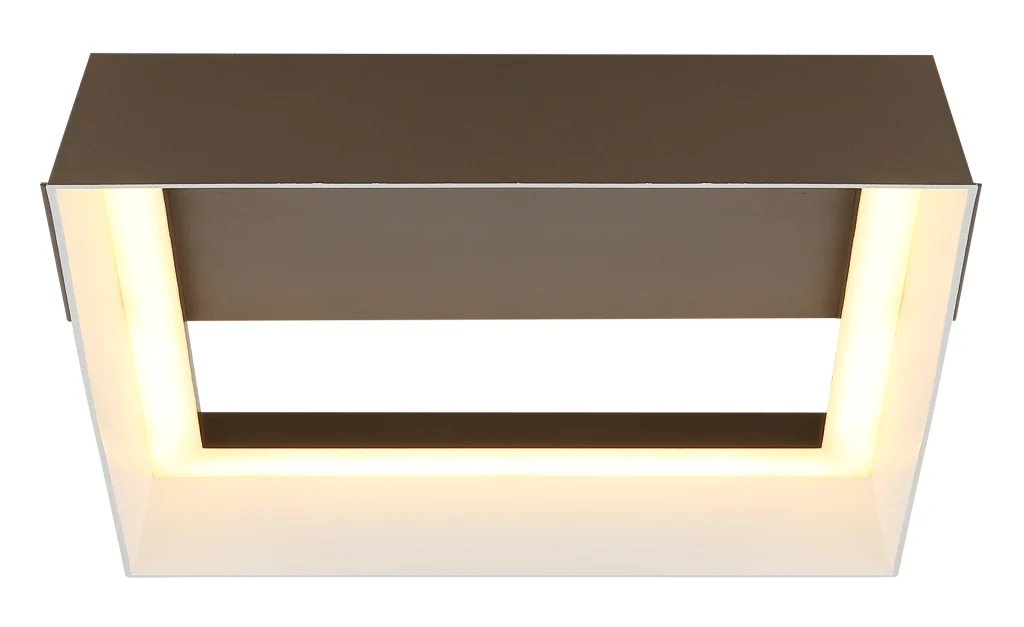 Plafonska svetiljka SYRAKUS kombinuje moderan dizajn sa funkcionalnim osvetljenjem i dodaje stilske akcente svakoj prostoriji. Pravougaona zidna ploča je istaknuta jednim aplikiranim kvadratom, dajući lampi dubinu i karakter. Telo napravljeno od mat metala boje kafe zrači toplinom i bezvremenskom elegancijom, dok abažur napravljen od mat plastike boje kafe i opal plastike nežno raspoređuje svetlost, stvarajući prijatnu atmosferu bez odsjaja. Sa dimenzijama D: 260 mm, Š: 240 mm, SYRAKUS pruža optimalno prisustvo na plafonu, a da pritom nije prenametljiv. Integrisana LED dioda isporučuje 690 lumena na 3000 K, proizvodeći toplo, udobno svetlo. Sa visokokvalitetnim materijalima, elegantnim dizajnom i efikasnim LED osvetljenjem, plafonska svetiljka SYRAKUS je savršena za male dnevne prostore, hodnike ili kancelarije gde se stil i funkcionalnost harmonično kombinuju, čineći je suptilnim, ali upečatljivim akcentom koji savršeno spaja kvalitet svetlosti i dizajn.