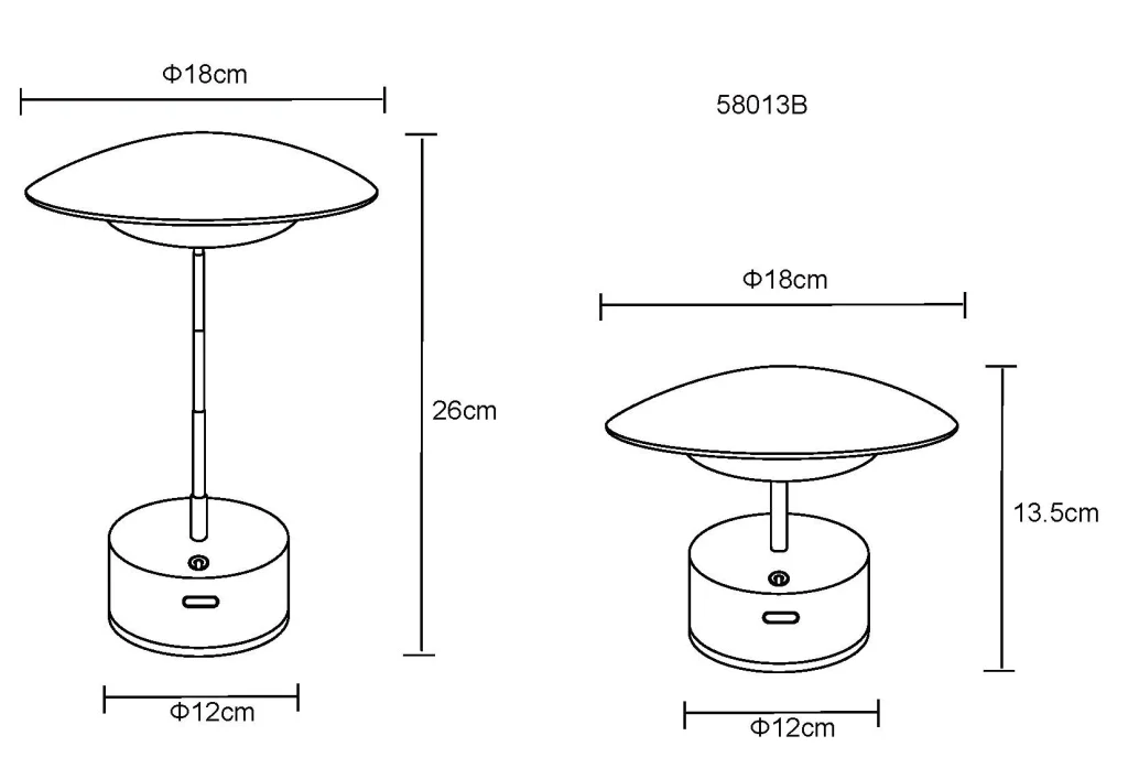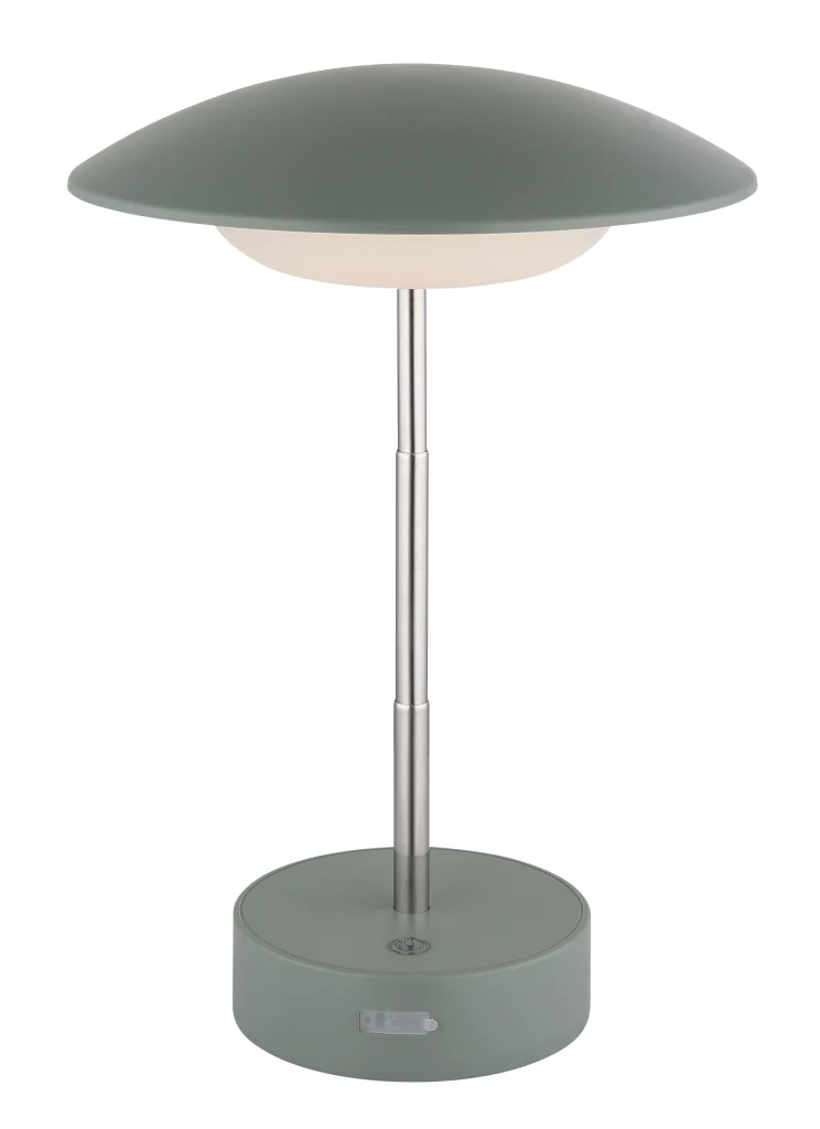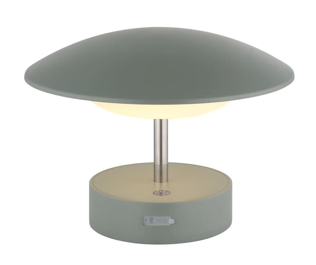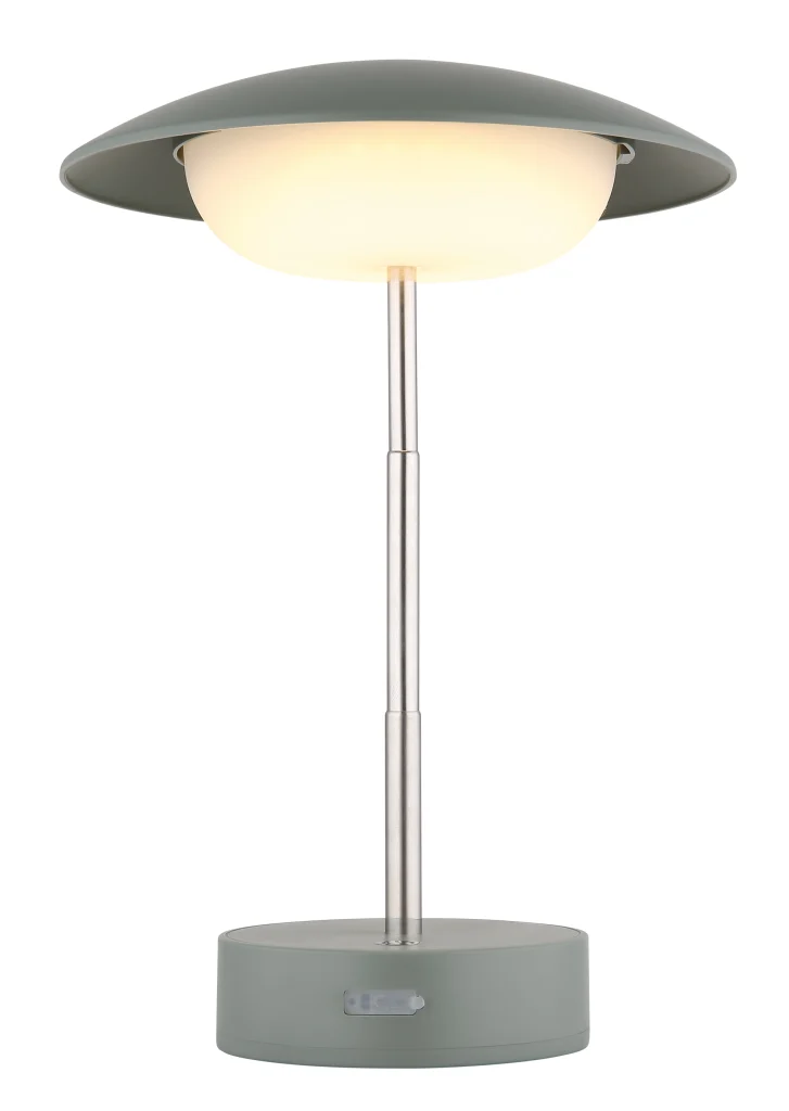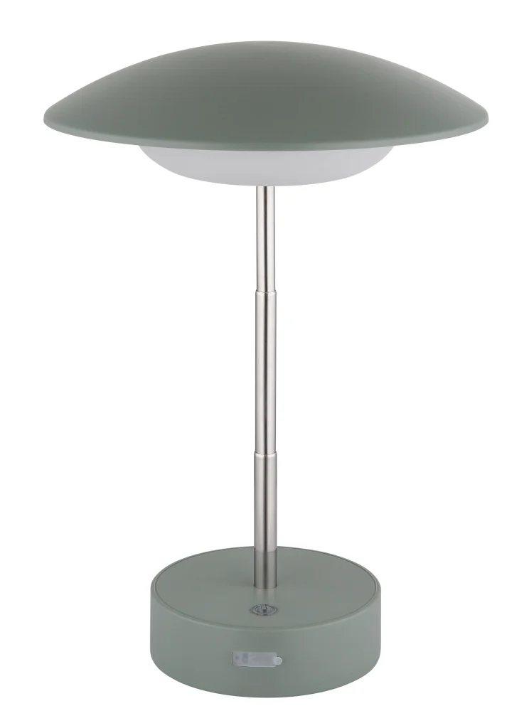 Otkrijte STONU LAMPU TOMO PLASTIK ZELENA, okruglu stonu lampu u obliku pečurke. Telo je napravljeno od mat zelene plastike i nerđajućeg čelika, dok je abažur napravljen od mat zelene i opal plastike. Ova stona lampa ima praktičan dodirni dimer i dolazi sa USB kablom za punjenje. Nudi toplo belo svetlo temperature od 3000 K i proizvodi snaga od 40 lumena. Zahvaljujući teleskopskom dizajnu, visina svetiljke se može podesiti. Vreme punjenja je oko 4 sata, a vreme osvetljenja je oko 6 sati, dok je svetlo upaljeno tokom punjenja. Kombinujući funkcionalnost sa privlačnim dizajnom, ova stona lampa je savršen dodatak za svaki dom ili kancelariju, pružajući prijatno osvetljenje i istovremeno izgledajući stilski.