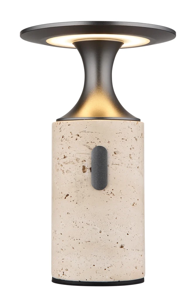 Stona lampa TRAVERTIN kombinuje elegantan dizajn sa praktičnom funkcionalnošću. Telo napravljeno od sivog travertina daje lampi prirodan, elegantan izgled, dok abažur od grafitnog aluminijuma i opal plastike obezbeđuje prijatnu, ravnomernu raspodelu svetlosti. Sa prečnikom od 120 mm, lampa je kompaktna i idealna za male stolove ili kao akcentno osvetljenje. Beskonačni dodirni dimer vam omogućava individualno podešavanje osvetljenosti, a funkcija memorije čuva poslednje izabrano podešavanje. Svetlom se može lako upravljati pomoću dodirnog prekidača za uključivanje/isključivanje. Dolazi sa adapterom, USB kablom za punjenje i USB kablom. Sa svetlosnim izlazom od 195 lumena i temperaturom boje od 3000 K, pruža toplo, prijatno svetlo. Nakon vremena punjenja od približno 3 sata, stona lampa TRAVERTIN nudi vreme osvetljenja od približno 5 sati i takođe svetli tokom procesa punjenja.