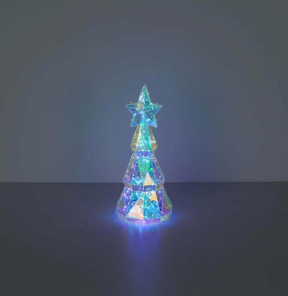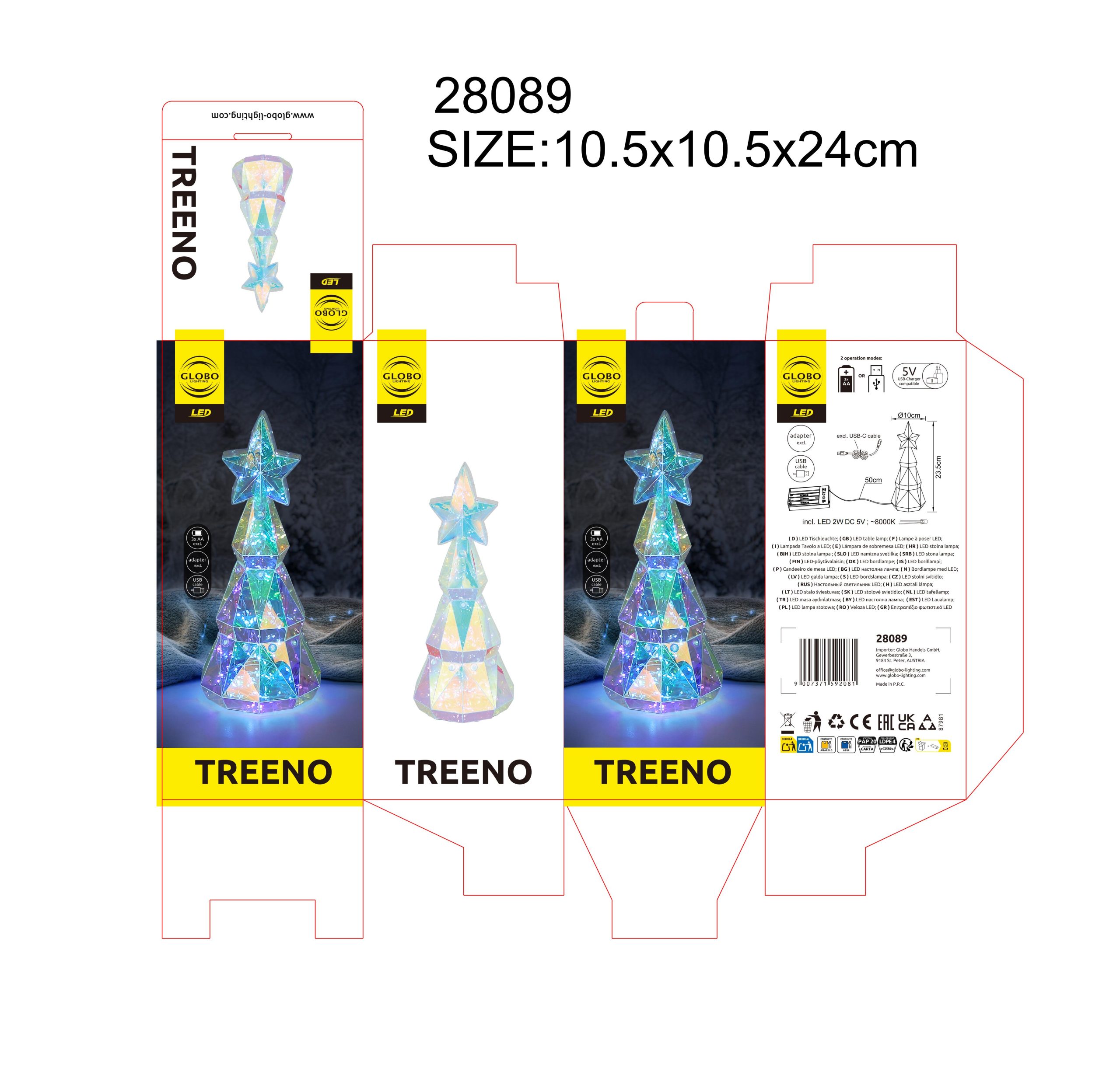 Stona lampa TREENO unosi praznično raspoloženje u vaš dom – sa modernim dodirom i notom magije. Dizajnirana u obliku stilizovane božićne jelke, ova lampa se ističe svojim organskim oblikom i čistim linijama. Prozirno plastično kućište joj daje lagan, gotovo lebdeći izgled koji se harmonično uklapa i u moderne i u tradicionalne enterijere. Sa prečnikom od 110 mm, TREENO je dovoljno kompaktna za bilo koji sto, prozorsku dasku ili policu – i zaista privlači pažnju. Integrisani prekidač obezbeđuje lako rukovanje. Zahvaljujući energetski efikasnoj LED tehnologiji (uključena), TREENO emituje prijatno hladno svetlo na 8000 K. Posebno je praktično: može se napajati putem USB-C kabla ili baterija (obe nisu uključene). Ovo olakšava postavljanje TREENO-a gde god želite praznični izvor svetlosti – bez vidljivog kabla. Dodajte stilski akcenat svom prazničnom dekoru pomoću moderne stone lampe TREENO.