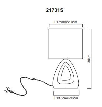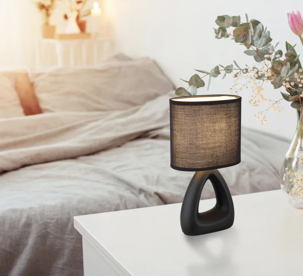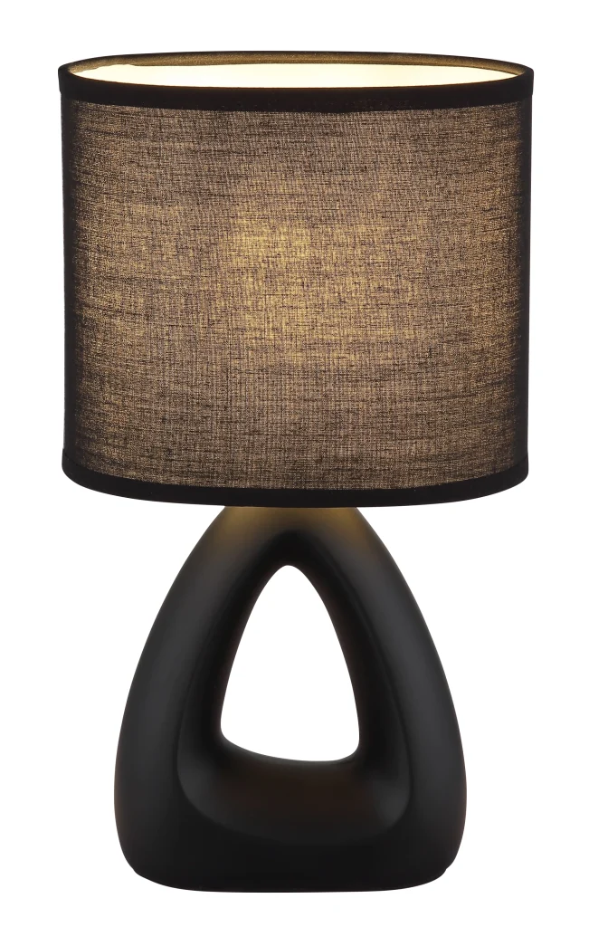 Stona lampa TRIANGLE unosi moderan dizajn i eleganciju u svaku prostoriju. Karakteriše je upečatljiva, trouglasta osnova sa dekorativnim dizajnom rupe, koja dodaje poseban dodir celokupnoj slici. Telo od crne keramike i ovalni abažur od tkanine u crnoj boji se savršeno usklađuju i stvaraju stilsku celokupnu sliku. Sa dimenzijama od 170 mm dužine i 100 mm širine, stona lampa TRIANGLE je kompaktna i idealno se uklapa na bilo koji sto ili noćni stočić. Prekidač na kablu obezbeđuje udoban rad, dok vam grlo E14 omogućava da podesite osvetljenje prema vašim potrebama. Pored toga što je funkcionalna, stona lampa TRIANGLE je elegantan dodatak koji će svakoj prostoriji dati modernu i prefinjenu atmosferu.