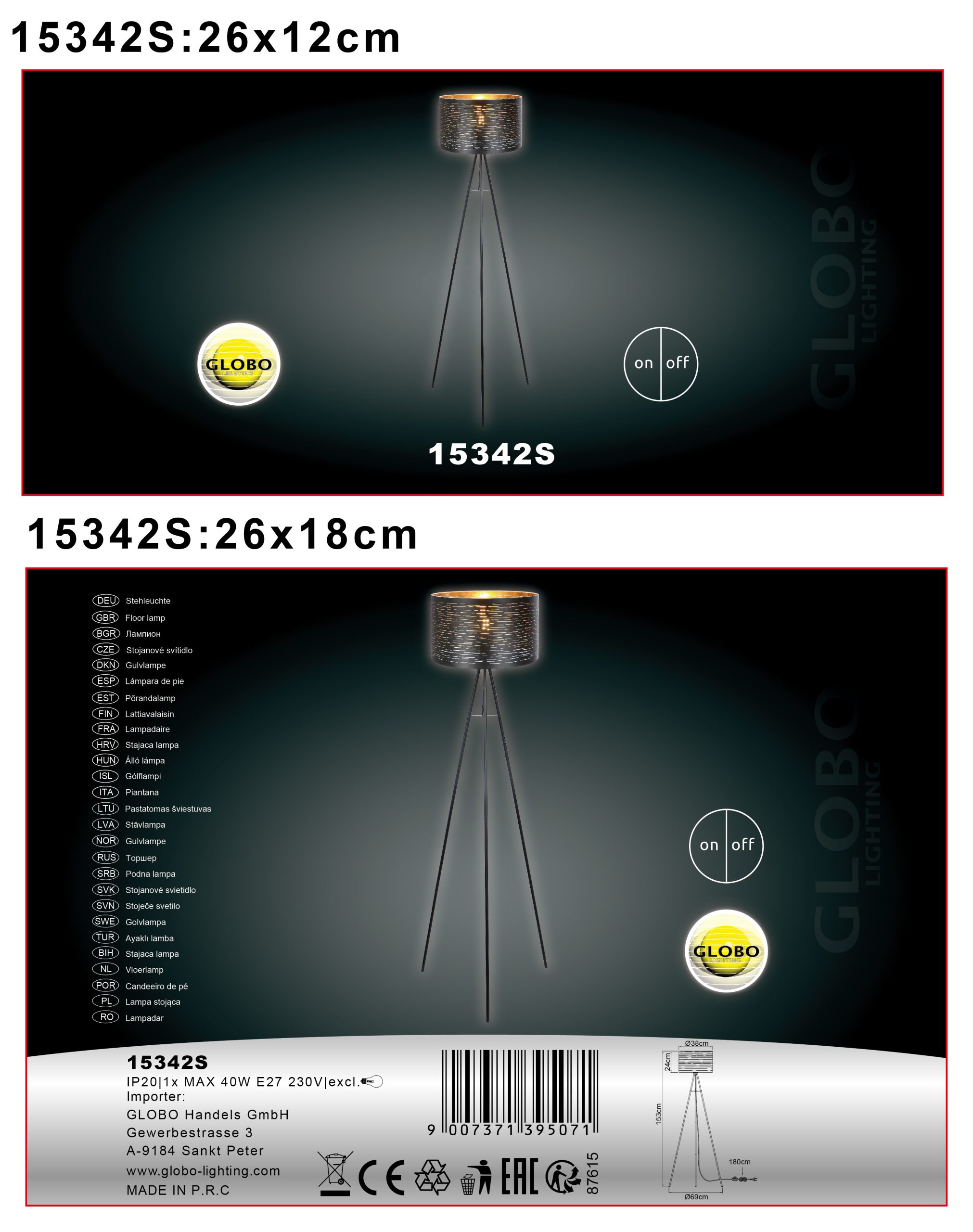Ova trokraka, izuzetno moderna podna lampa u crnoj boji, iz TUNNO serije, postavlja svetleće akcente. Korišćena u dnevnoj sobi ili kancelariji, ova lampa, sa svojim dekorativnim perforacijama, prečnikom od 38 cm i zlatnom bojom iznutra, može doprineti udobnom okruženju. Standardni prekidač za uključivanje/isključivanje i kabl za priključivanje dužine 1,8 metara čine ih fleksibilnim. Ima grlo E27, što vam omogućava da slobodno izaberete sijalicu. Preporučujemo LED lampe, zbog njihove uštede energije i dugog veka trajanja.
