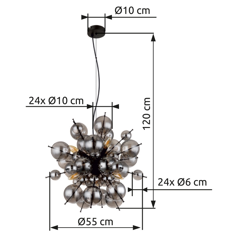 Viseća lampa UDO kombinuje elegantan dizajn sa modernom estetikom i postavlja stilske akcente u vašem domu. Okrugli oblik viseće lampe vešto je istaknut štapovima sa kuglicama različitih veličina. Telo viseće lampe je napravljeno od mat crnog metala i daje joj bezvremensku eleganciju. Abažur UDO viseće lampe sastoji se od dimljenih staklenih sfera koje stvaraju meko i prijatno osvetljenje. Sa prečnikom od 550 mm, ova viseća lampa pruža izdašno osvetljenje vaše sobe. UDO viseća lampa se lako montira na plafon i nudi svetlost bez odsjaja. Bilo da je u dnevnoj sobi, trpezariji ili hodniku, ova viseća lampa dodaje privlačnu atmosferu svakoj prostoriji. Sa svojim atraktivnim dizajnom i visokokvalitetnom izradom, UDO viseća lampa je apsolutni magnet za oči. Uronite svoj dom u prijatno i stilsko svetlo i dozvolite sebi da vas inspiriše ova viseća lampa.