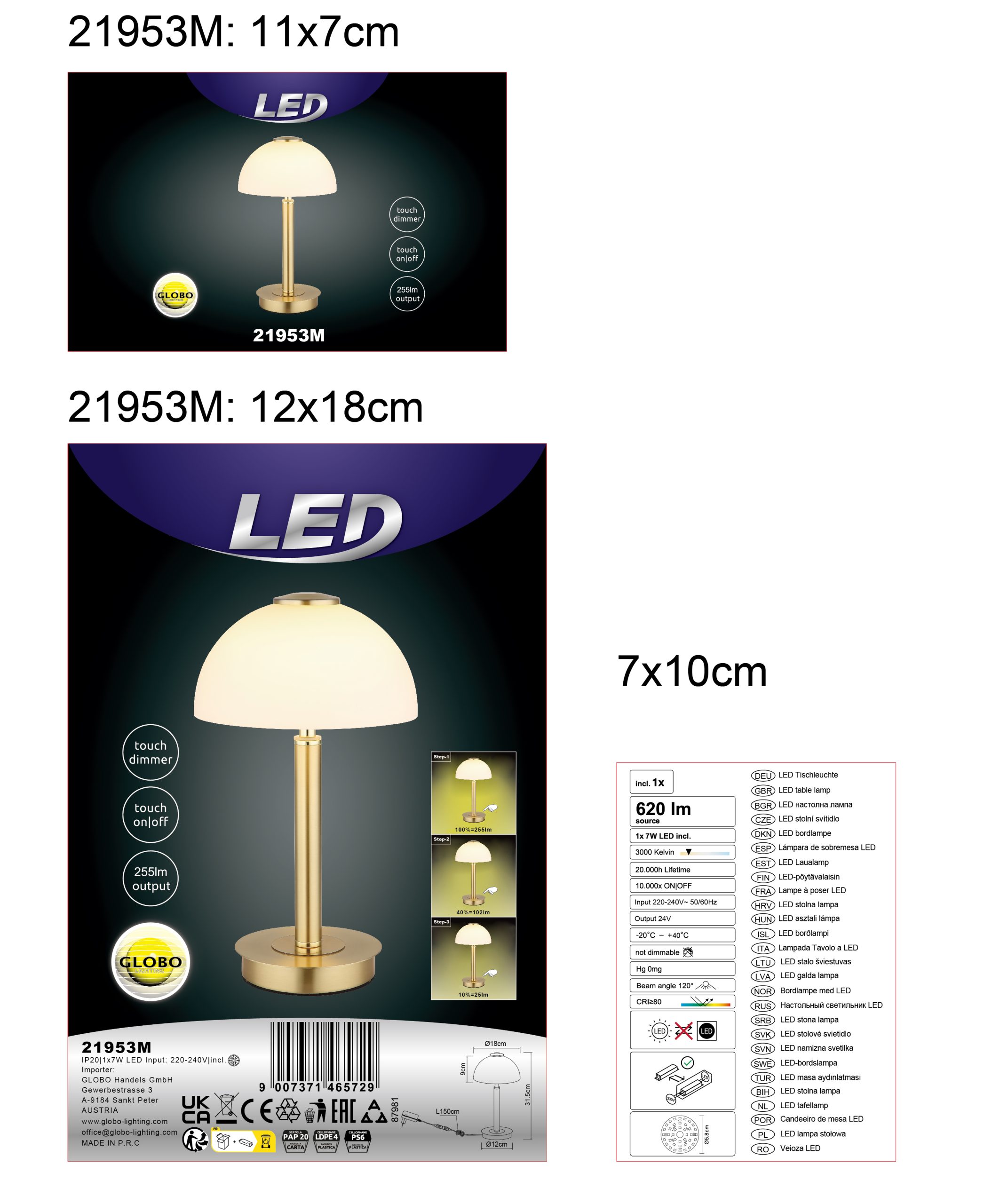 Stona lampa ULDIN predstavlja elegantan izvor svetlosti za vaš dom. Njen okrugli abažur sa poklopcem daje lampi klasičan šarm i obezbeđuje prijatnu raspodelu svetlosti. Telo napravljeno od mat metala boje mesinga u kombinaciji sa metalom boje mesinga daje lampi plemenit izgled. Abažur je napravljen od opal stakla, koje pruža meko i difuzno svetlo. Stona lampa ULDIN je opremljena dodirnim dimerom, koji omogućava bezstepeno podešavanje osvetljenosti od 100% do 10%. Pored toga, ima funkciju uključivanja/isključivanja na dodir za praktično uključivanje i isključivanje. Sa izlazom od 255 lumena i temperaturom svetlosti od 3000 K, stona lampa ULDIN pruža prijatno osvetljenje za razne prilike. Njena kompaktna veličina sa prečnikom od 180 mm čini je svestranim dodatkom svakoj prostoriji u vašem domu.