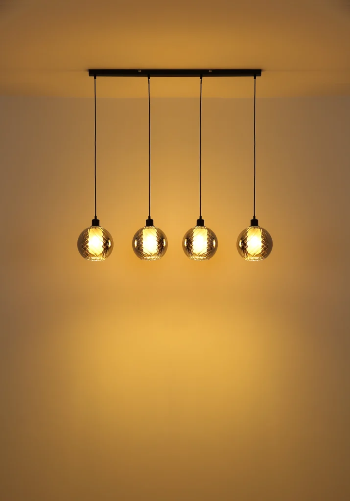 Viseća lampa ULF donosi moderan dizajn i elegantnu funkcionalnost u vaše sobe. Ravna šina od mat crnog metala čini savršenu osnovu za umetnički dizajnirane staklene kugle sa suptilnim žlebovima i staklenim cilindrom unutra. Ove sfere napravljene od dimljenog stakla i opalnog stakla proizvode meko, harmonično svetlo i stvaraju prijatnu atmosferu. Sa dužinom od 1100 mm i širinom od 200 mm, ova viseća lampa je idealna za veće prostorije kao što su trpezarije ili kuhinjska ostrva. Grlo E27 vam nudi slobodu izbora sijalica prema vašim individualnim željama. Viseća lampa ULF kombinuje stilski dizajn sa praktičnim osvetljenjem i postavlja elegantan akcenat u svakoj prostoriji. Idealna je za svakoga ko želi da kombinuje moderan dizajn sa visokokvalitetnim osvetljenjem.