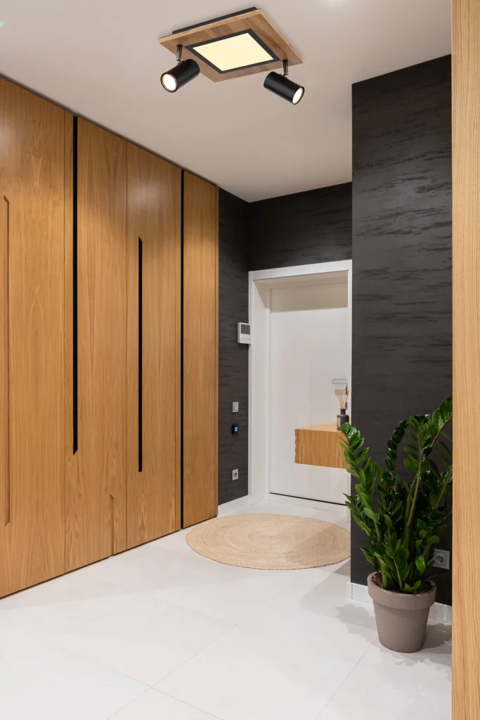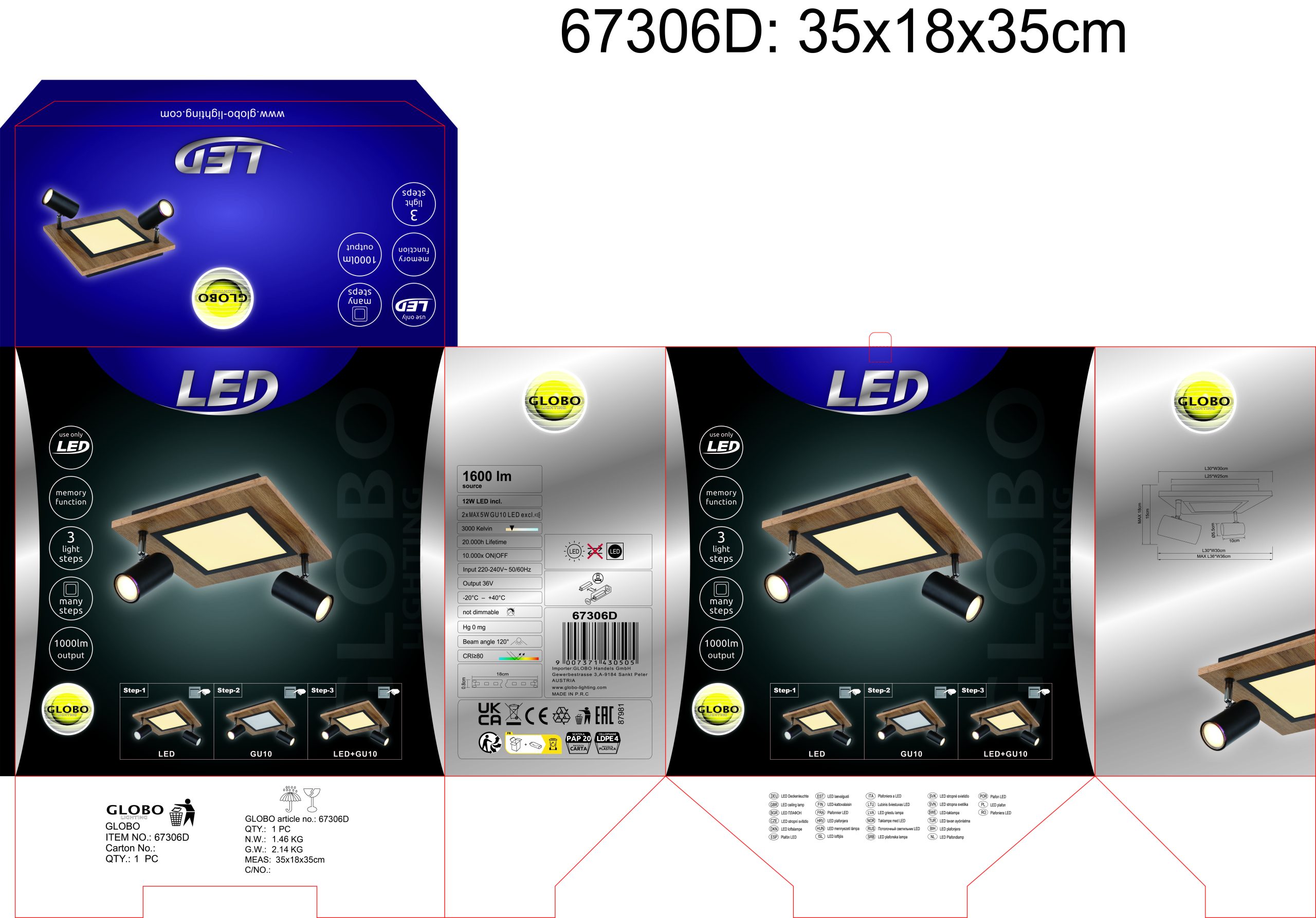 ULLA Dizajn kvadratna plafonska lampa je svestrano i moderno rešenje za osvetljenje vašeg doma. Sa kućištem od mat crnog metala i MDF drvenog efekta u tamnoj boji, lampa dodaje dašak elegancije svakoj prostoriji. Abažur je napravljen od opal plastike i crnog mat metala, što pruža prijatno osvetljenje bez odsjaja. Plafonska lampa ima 2 GU10 reflektora i može se podesiti na različite nivoe pomoću zidnog prekidača. Zahvaljujući funkciji memorije, možete sačuvati svoja željena podešavanja. Sa veličinom od 300 mm x 300 mm, snagom od 12 W i izlazom od 1000 lumena, ULLA Dizajn plafonska lampa nudi jarko svetlo sa prijatnom temperaturom boje od 3000 K. Možete birati između različitih nivoa: LED, GU10 ili oba reflektora zajedno.
