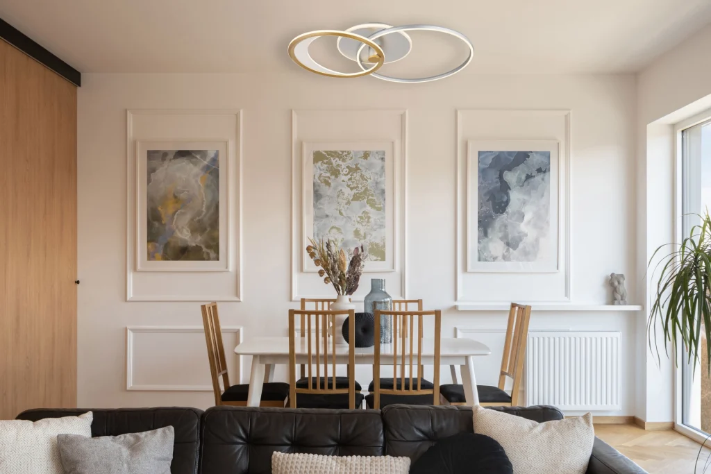 Pojačajte ambijent u svom domu stilskom PLAFONSKOM LAMPOM UMBRA ALUMINIJUM, BRUŠENA SREBRNA BOJA, koja se ističe svojim pravougaonim oblikom i posebnim dizajnerskim izgledom. Telo je napravljeno od aluminijuma sa završnom obradom u srebrnoj ili zlatnoj brušenoj završnoj obradi, stvarajući jedinstvenu eleganciju. Abažur je napravljen od akrila i plastike, koja ima dekorativne tačke slične opalu. Ova kombinacija stvara jedinstven kontrast između svetlih i tamnih tonova. Plafonska lampa ima daljinski upravljač koji vam omogućava da prigušite svetlo, fiksirate boju i aktivirate funkciju noćnog svetla. Pored toga, ima funkciju memorije koja čuva prethodnu osvetljenost i boju. Lampa ima izlaznu snagu od 1684 lumena i može se opisati između 2700K i 6500K. Akrilni poklopac je završen laserski isečenim dekorativnim tačkama, što apstrahuje svetlost i stvara jedinstven ambijent.