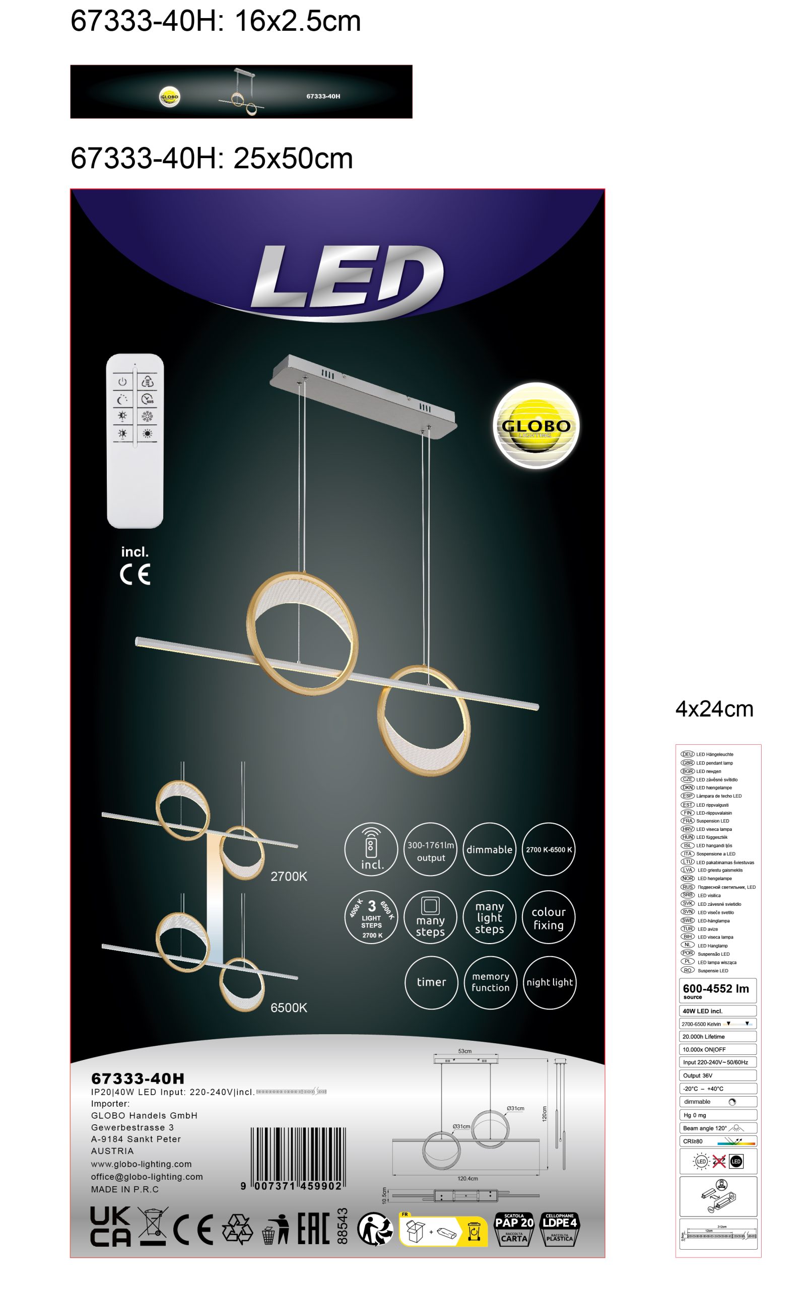 Pojačajte atmosferu u svom domu elegantnom VISEĆOM LAMPOM UMBRA ALUMINIJUM, BRUŠENA SREBRNA BOJA, koja se ističe svojim izdržljivim dizajnom i posebnim dizajnerskim izgledom. Telo je napravljeno od aluminijuma sa završnom obradom u srebrnoj ili zlatnoj brušenoj završnoj obradi, stvarajući jedinstvenu eleganciju. Lampa ima dva prstena koji formiraju ravan snop, što je čini idealnom za moderne prostore. Abažur je napravljen od akrila i plastike, koja ima dekorativne tačke slične opalu. Viseća lampa ima daljinski upravljač koji vam omogućava da prigušite svetlo, fiksirate boju i aktivirate funkciju noćnog svetla. Pored toga, ima funkciju memorije koja čuva prethodnu osvetljenost i boju. Lampa ima izlaznu snagu od 1761 lumena i može se opisati između 2700K i 6500K. Akrilni poklopac je završen laserski isečenim dekorativnim tačkama, što apstrahuje svetlost i stvara jedinstven ambijent.