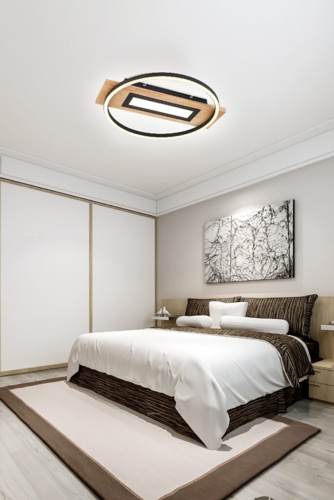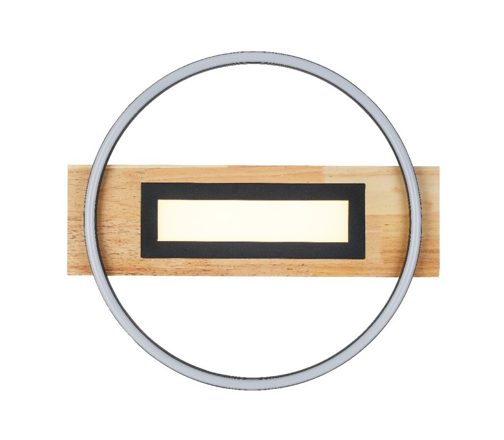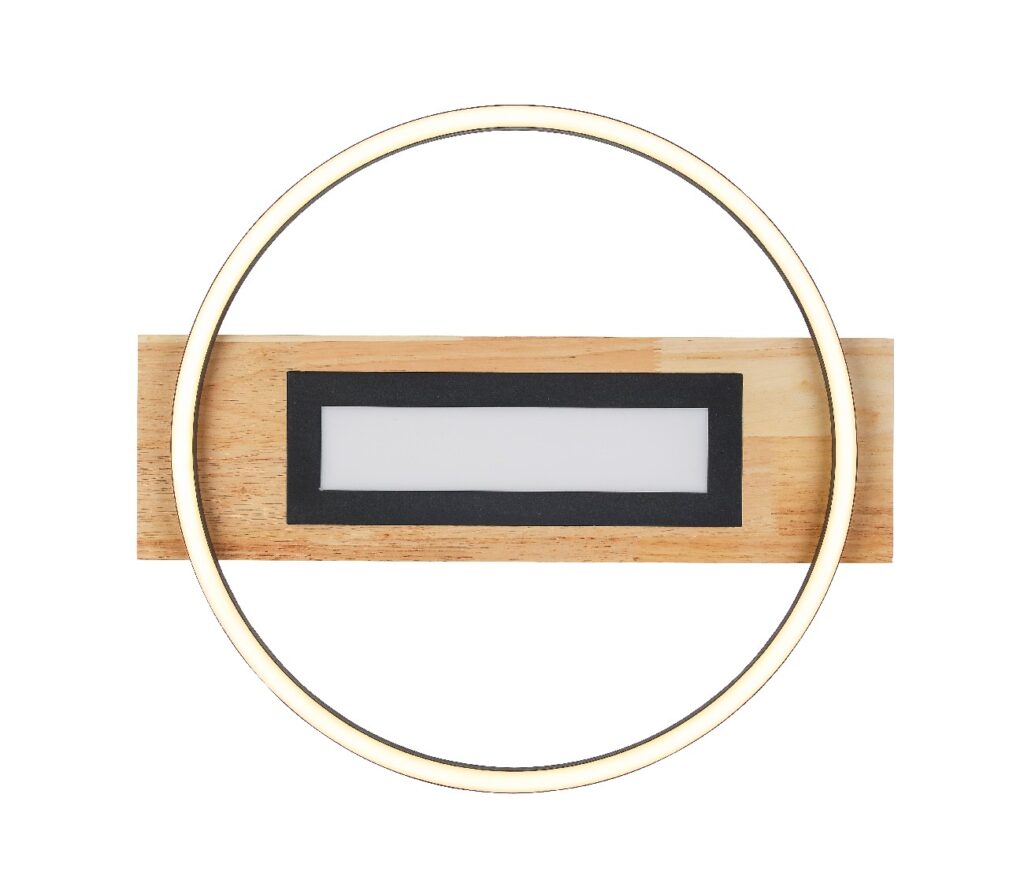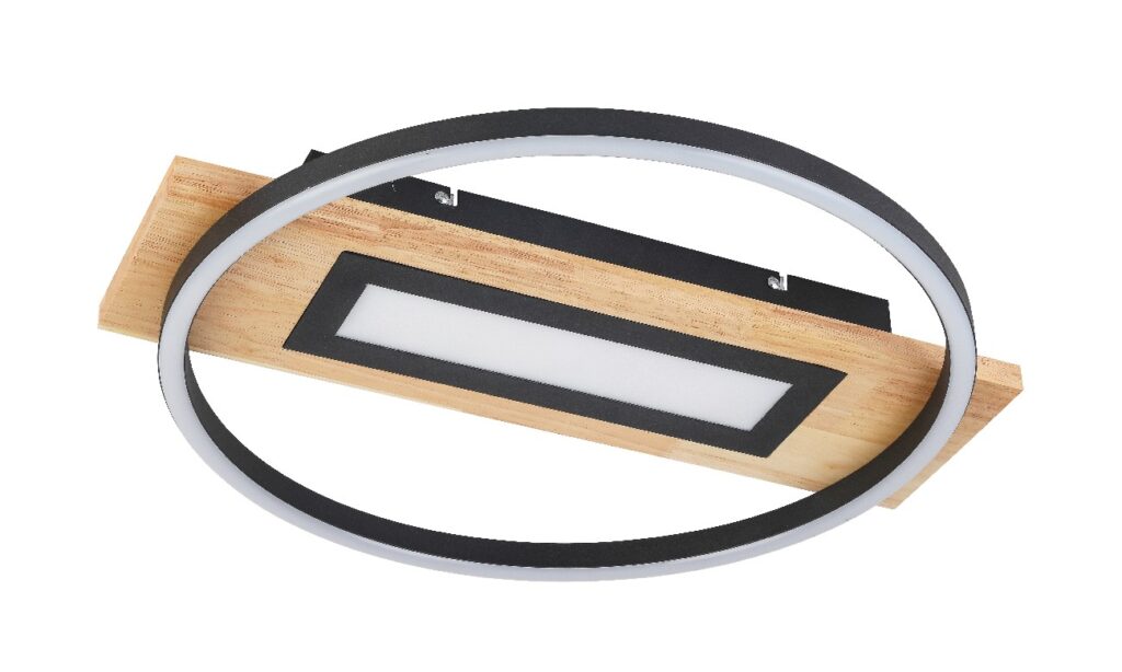 Plafonjera UNA ističe se atraktivnim izgledom i kombinacijom materijala crnog metala i drveta. Ima opciju 3 STEP – TRI MOGUĆNOSTI OSVETLJENJA. Uz pomoć prekidača na zidu birate osvetljenje koje vam odgovara, prvo se pali svetlo u krugu, zatim svetlo u krugu i palnel u sredini i na kraju samo panel u sredini. Uključene LED sijalice obezbeđuju 3800 lumena jake svetlosti sa prijatnom bojom od 4000K.