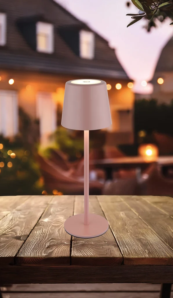 Okrugla stona lampa VANCOUVER impresionira svojim elegantnim oblikom pehara i modernim mat ružičastim dizajnom. Sa kompaktnim prečnikom od 85 mm, idealna je kao atmosferski izvor svetlosti na stolovima, noćnim stočićima ili bočnim stočićima. Telo i abažur od mat obojenog metala i abažur od opal plastike pružaju prijatnu raspodelu svetlosti bez odsjaja. Lampa ima bezstepeni dodirni dimer, koji omogućava individualno podešavanje boje svetlosti i fiksiranje između toplih 3000 K i hladnih 6000 K. Zahvaljujući funkciji uključivanja/isključivanja na dodir, rukovanje je posebno jednostavno. Integrisana LED dioda isporučuje 50 lumena svetlosnog izlaza. Sa IP44 zaštitom, VANCOUVER je pogodna i za vlažnija okruženja. Paket uključuje adapter, USB kabl za punjenje i USB kabl. Vreme punjenja je približno 4 sata, sa trajanjem osvetljenja od približno 6 sati. Lampa se praktično pali i tokom punjenja, što je čini posebno fleksibilnom za upotrebu.