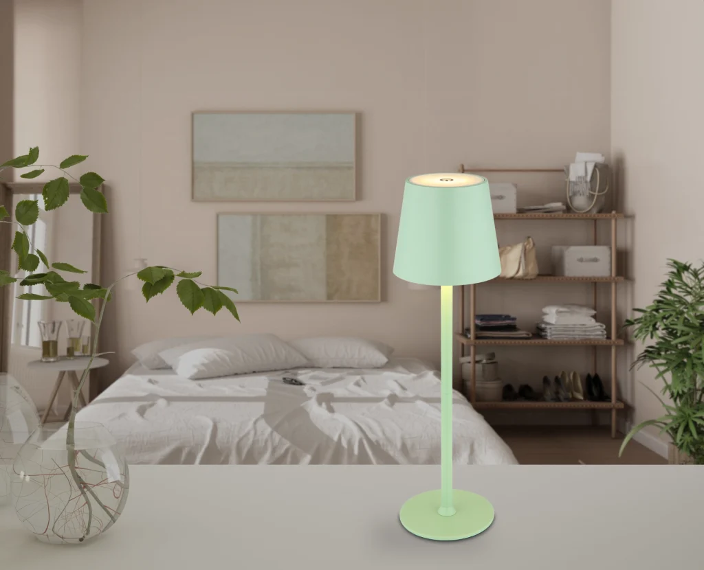 Stona lampa VANNIE je stilski dodatak svakom enterijeru. Njen elegantan dizajn sa ravnom cevčicom daje joj moderan izgled. Mat bledozeleno metalno kućište dodaje lampi dašak elegancije. Okrugli abažur je napravljen od mat bledozelene plastike, što obezbeđuje nežnu difuziju svetlosti. Pored toga, abažur je opremljen opalnom plastikom, koja ravnomerno raspoređuje svetlost. Stona lampa VANNIE ima bezstepeni dodirni dimer i funkciju memorije za čuvanje željenih podešavanja. Sa izlazom od 130 lumena i temperaturom svetlosti od 3000 K, nudi prijatno osvetljenje. Svetlo se isporučuje sa USB kablom za punjenje i ima funkciju dodirnog uključivanja/isključivanja za lako uključivanje i isključivanje. Vreme punjenja je oko 4 sata, a vreme osvetljenja je između 4 i 6 sati. Sa IP44 zaštitom, pogodna je i za upotrebu na otvorenom.