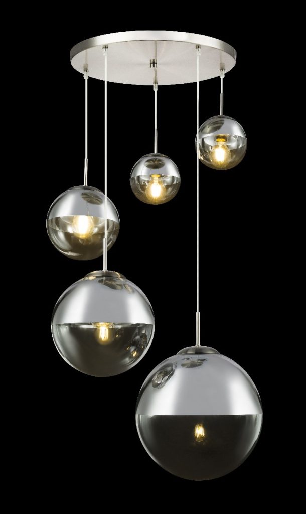 Ova moderna visilica, iz serije VARUS, ubeđuje svojim prelepim izgledom. Prečnik osnove koja se nalazi na plafonu je 65cm, sa pet staklenih kugli različitih veličina. U gornjem delu, staklena kugla je nikl-mat. Njegov dizajn garantovano privlači pažnju u bilo kojoj dnevnoj ili spavaćoj sobi. Zahvaljujući pet E27 grlo, imate mogućnost da odredite osvetljenje do maksimalnih 40 vati. U zavisnosti od toga koju svetlu boju i lagani intenzitet želite. Preporučujemo LED sijalice zbog njihove trajnosti i uštede energije. Lampu možete jako dobro kombinovati sa drugim artiklima ove serije.