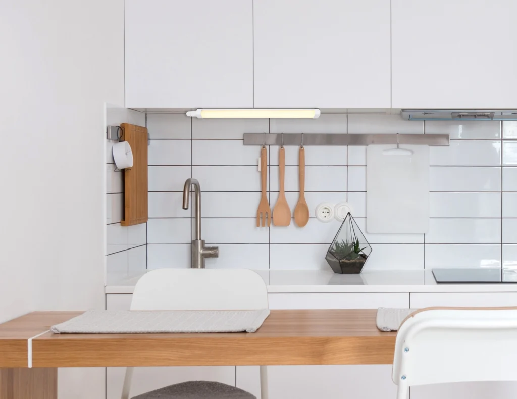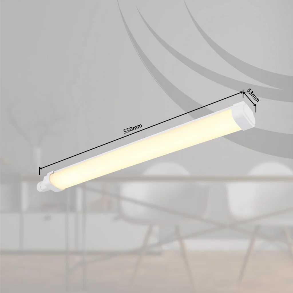Ravna VILLY svetiljka za ispod ormarića impresionira svojim tehničkim dizajnom i savršena je za osvetljavanje kuhinjskih elemenata, polica ili radnih površina. Telo od bele plastike obezbeđuje jednostavan, moderan izgled, dok opalni plastični abažur ravnomerno raspršuje svetlost i obezbeđuje prijatno osvetljenje. Sa dužinom od 550 mm i širinom od samo 53 mm, svetlo se uklapa u skoro svaki profil podkonstrukcije i diskretno se uklapa u vaš enterijer. Uključena LED dioda pruža toplo belo osvetljenje sa 3000 K, što stvara prijatnu atmosferu. Zahvaljujući klasi zaštite IP65, svetiljka je zaštićena od prašine i mlazeva vode i stoga je idealna za upotrebu u vlažnim prostorijama. Uključujući dve montažne kopče i spoljni priključak, VILLY svetiljka za ispod ormarića se lako instalira i nudi efikasno, dugotrajno rešenje za osvetljenje.