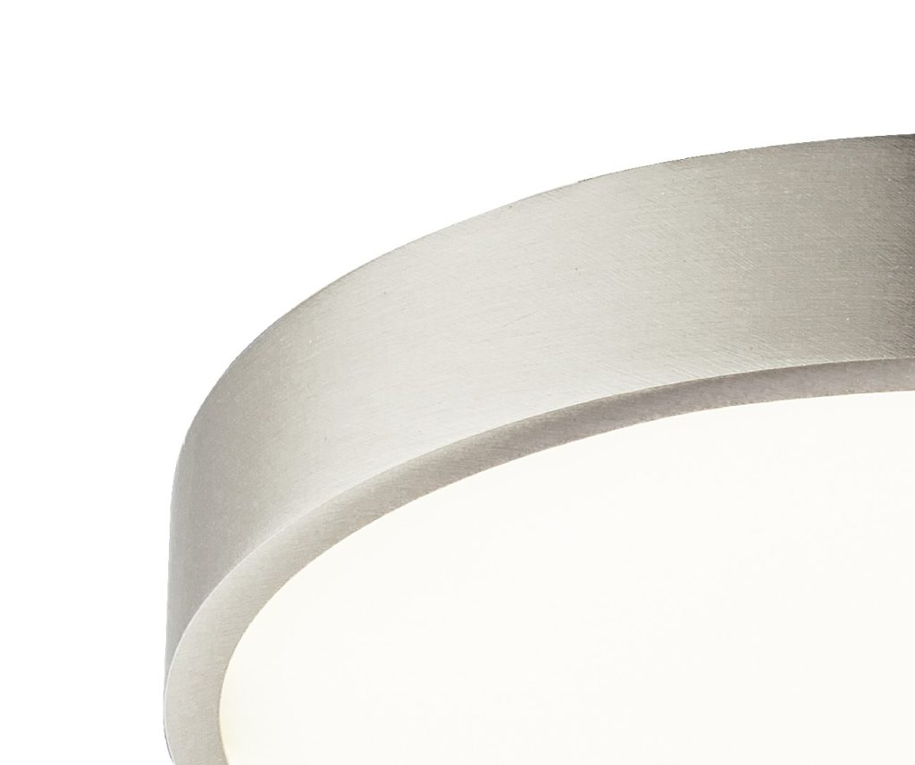 Ova jednostavna plafonska lampa (Ø22cm) VITOS serije ubeđuje pre svega svojom funkcionalnošću. Opalno akrilno staklo u sredini okruženo je nikl-mat ivicom od livenog aluminijuma. Lampa se može prigušiti do 2520 lumena, ima uključenu LED sijalicu od 28 vati i daje prijatnu boju svetla sa neutralnim belim svetlom od 4000 Kelvina. Sa ostalim modelima ove serije, možete dodatno ulepšati sliku svog životnog prostora.
