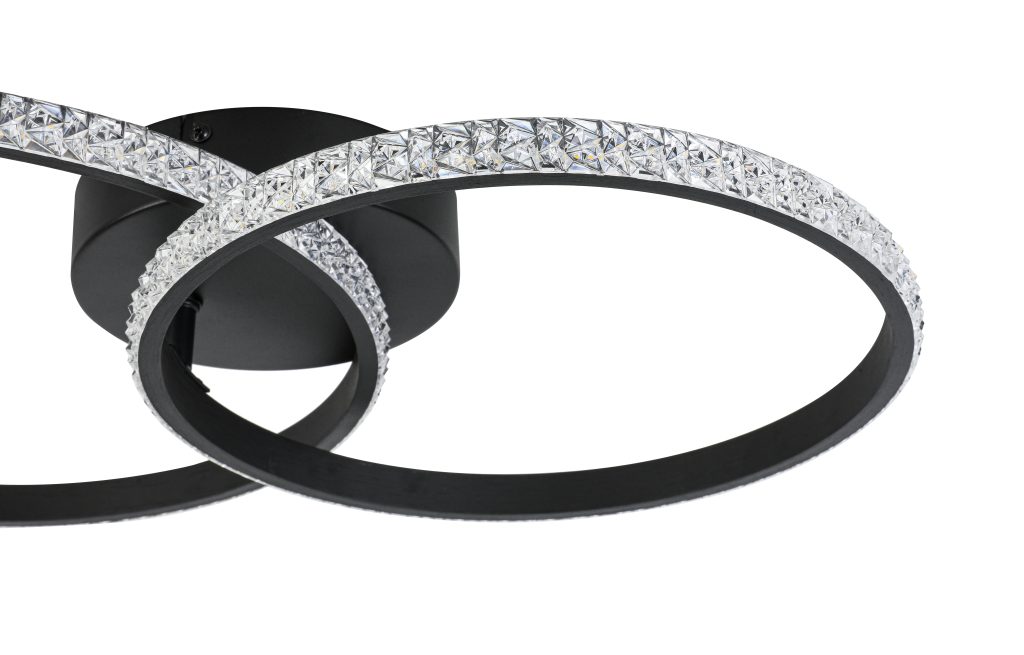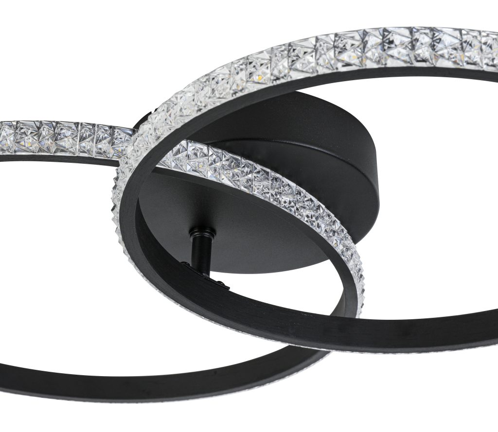 Plafonska lampa je napravljena od metala u crnoj mat boji i plastike u opal boji. Ima dimenzije DxŠxV: 550x350x80mm Svetiljka ima LED diodu snage 24W i napona 230V, koja obezbeđuje svetlosni izvor od 2500lm na temperaturi boje od 4000K. Nadamo se da ćete biti zadovoljni ovom plafonskom lampom.