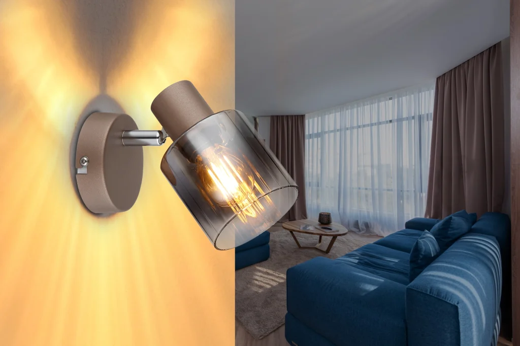 Reflektor WALTON impresionira modernim dizajnom i visokokvalitetnim materijalima, idealnim za ciljano osvetljenje u dnevnim ili radnim prostorima. Okrugla zidna ploča od stakla sa finim žlebovima dodaje elegantan dodir i stvara prelepe svetlosne efekte. Telo, napravljeno od mat metala boje kafe sa hromiranim akcentima, prenosi stabilnost i vrhunski kvalitet. Reflektor ima dimljeni, providni i gradijentni stakleni abažur koji prijatno raspoređuje svetlost bez odsjaja. Sa dimenzijama Š: 80 mm, D: 125 mm, WALTON pruža kompaktno, ali efikasno osvetljenje. Grlo E14 nije uključeno, što omogućava fleksibilan izbor izvora svetlosti. Kombinacija bezvremenskog dizajna, kvalitetnih materijala i fokusiranog osvetljenja čini WALTON stilskim akcentom za hodnike, dnevne sobe ili radne prostore.