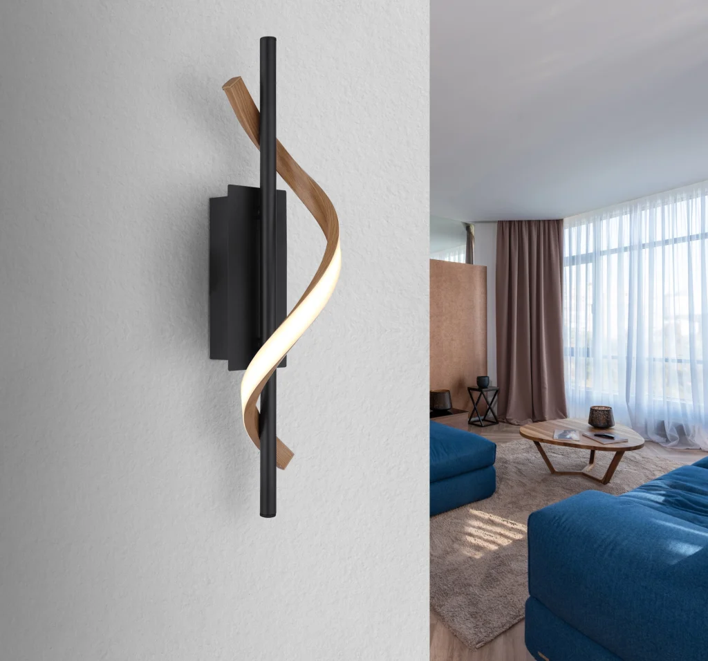 Zidna lampa WATKINS daje moderan dizajnerski izraz u vašoj sobi. Sa svojom ravnom šipkom obmotanom LED trakom, pruža stilsko osvetljenje. Telo od crnog, mat metala savršeno se usklađuje sa abažurom od tamnog lakiranog aluminijuma sa izgledom drveta i opal plastike, što omogućava ravnomernu, prijatnu raspodelu svetlosti. Sa širinom od 100 mm i dužinom od 145 mm, ova zidna lampa je idealna za hodnike, dnevne sobe ili spavaće sobe. Sa temperaturom boje od 3000 K, nudi toplo svetlo koje stvara prijatnu atmosferu. Integrisana LED tehnologija nudi visoku energetsku efikasnost i dug vek trajanja, tako da možete uživati u ovoj svetlosti dugoročno. Zidna lampa WATKINS je savršen izbor za svakoga ko želi da spoji dizajn i funkcionalnost.