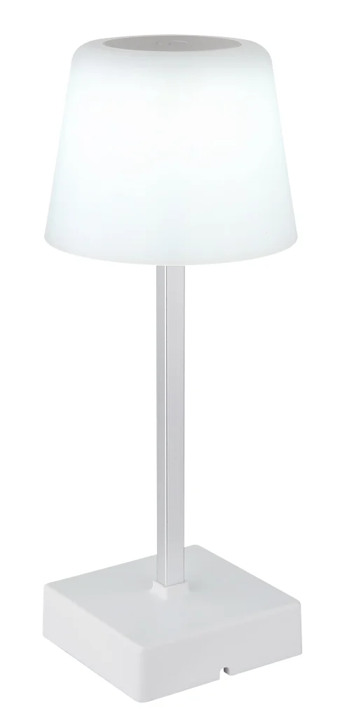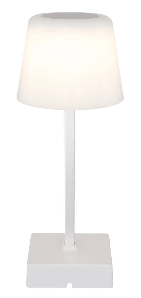 Stona lampa XAYDEN impresionira svojim minimalističkim dizajnom i visokom funkcionalnošću. Sa okruglim abažurom od opal plastike i kvadratnim postoljem od mat bele plastike i aluminijuma, savršeno se uklapa u moderne životne prostore. Kontinuirani dodirni dimer omogućava individualno podešavanje osvetljenosti, dok se temperatura boje može fleksibilno menjati između toplih 3000 K i hladnih 6000 K. Pored toga, boje svetlosti se mogu praktično podesiti. Sa praktičnom funkcijom uključivanja/isključivanja na dodir i uključenim USB kablom za punjenje, svetlo se može koristiti i bežično. Nakon vremena punjenja od približno 4 sata, XAYDEN pruža vreme rada do 6 sati. Sa svetlosnim izlazom od 106 lumena, pruža prijatno, ne previše jako svetlo. XAYDEN je stoga savršen izbor za fleksibilno i elegantno osvetljenje, bilo na noćnom stočiću ili kao dekorativno akcentno osvetljenje.