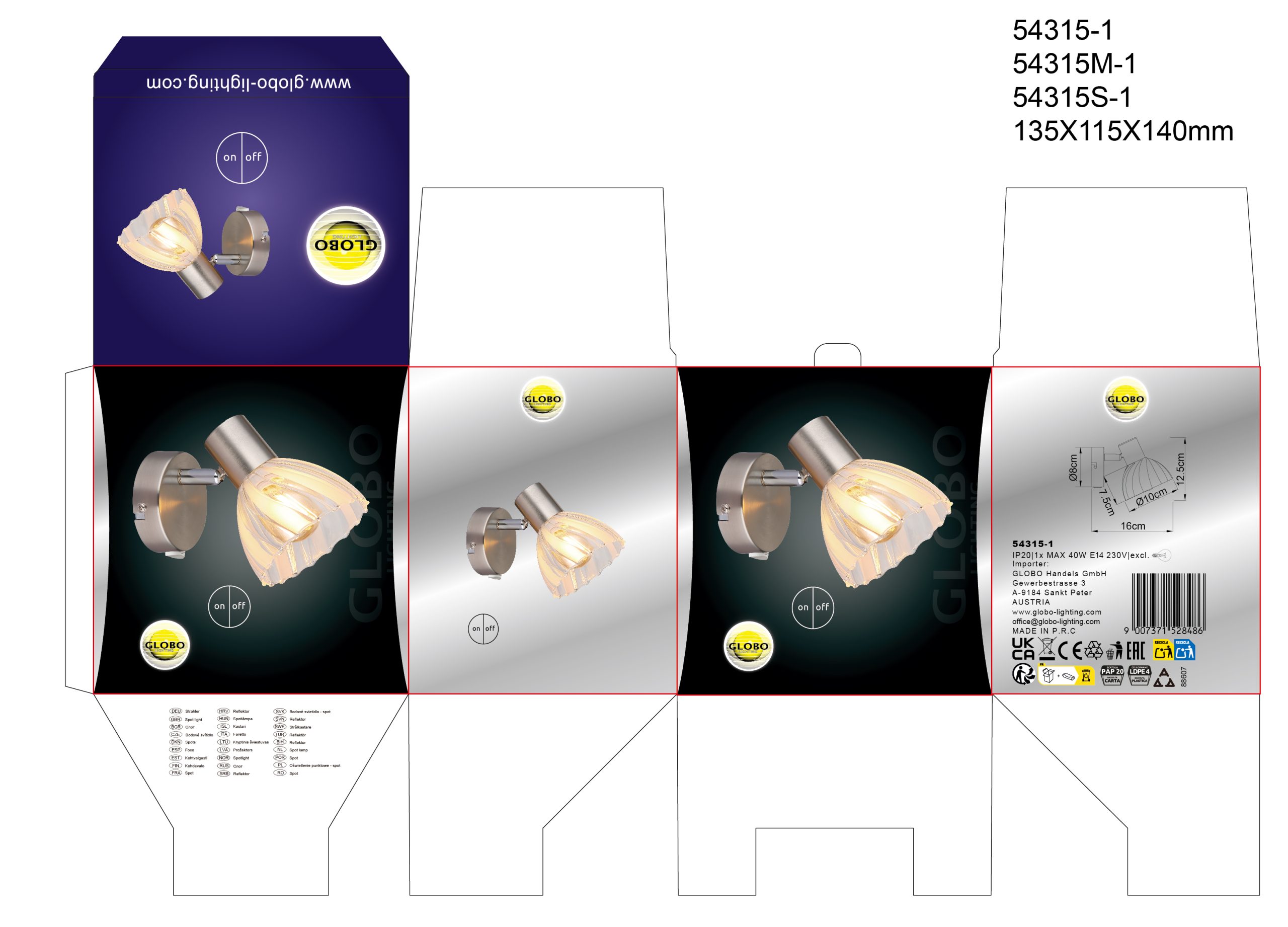 Reflektor ZACHERY kombinuje moderan dizajn sa praktičnom funkcionalnošću. Sa okruglom zidnom pločom i abažurom završenim dekorativnim žlebovima, ovaj reflektor pruža elegantno rešenje za osvetljenje u vašem domu. Telo napravljeno od mat nikla i hroma daje reflektoru stilski, savremen izgled koji se može integrisati u širok spektar stilova nameštaja. Abažur od satiniranog i providnog stakla obezbeđuje ravnomernu raspodelu svetlosti i stvara atraktivne, sjajne akcente. Integrisani prekidač na predmetu omogućava lako rukovanje. Sa širinom od 100 mm i visinom od 160 mm, reflektor ZACHERY je idealan za osvetljavanje zidova, ramova za slike ili akcentnih područja. Grlo E14 (osim E14) vam nudi slobodu da izaberete pravu sijalicu za svoje potrebe. Visokokvalitetni reflektor za stilski svesne životne prostore.